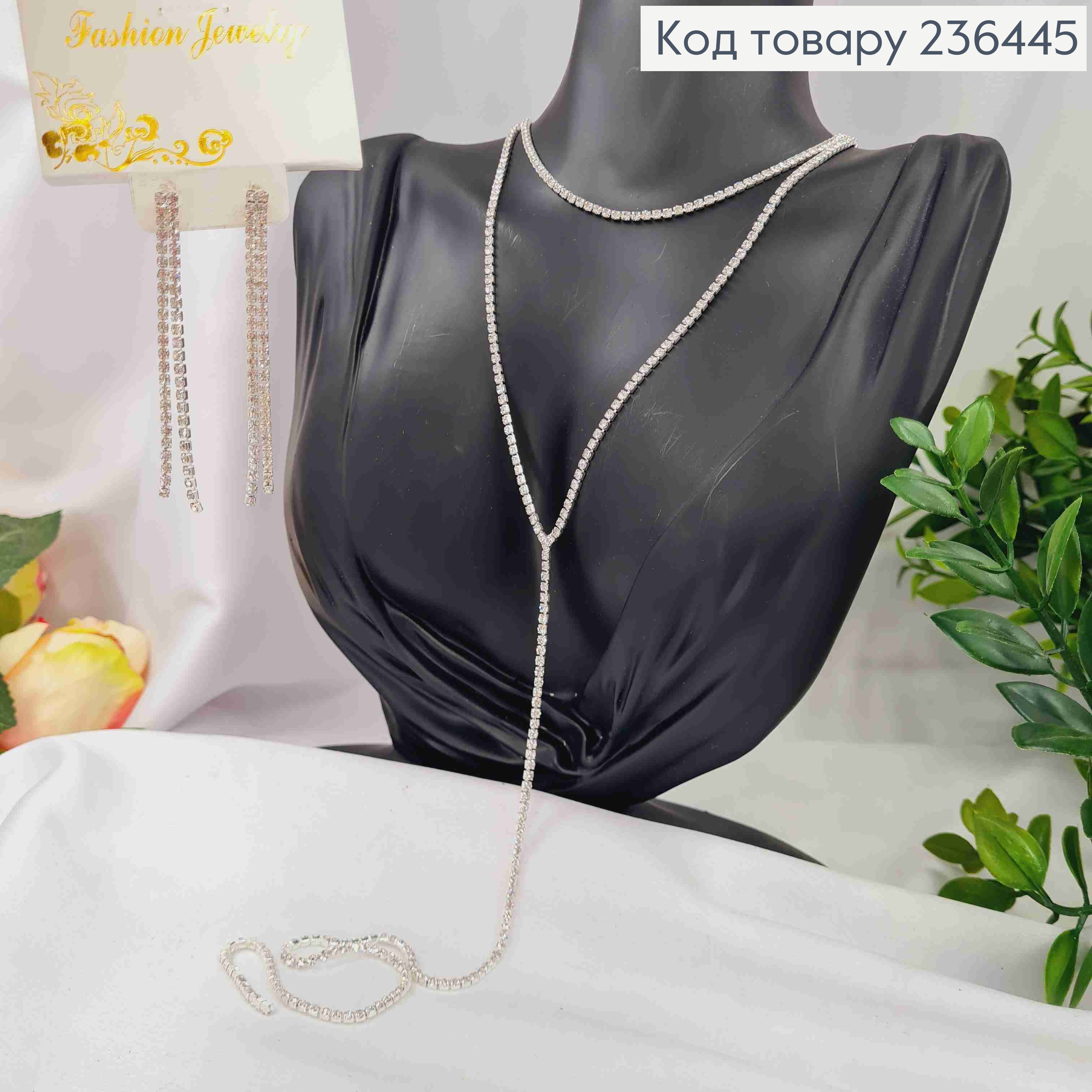 Біжутерія на шию Шнурок прикрашений Стразами, 119см, Срібного кольору, Fashion Jewelry 236492 фото