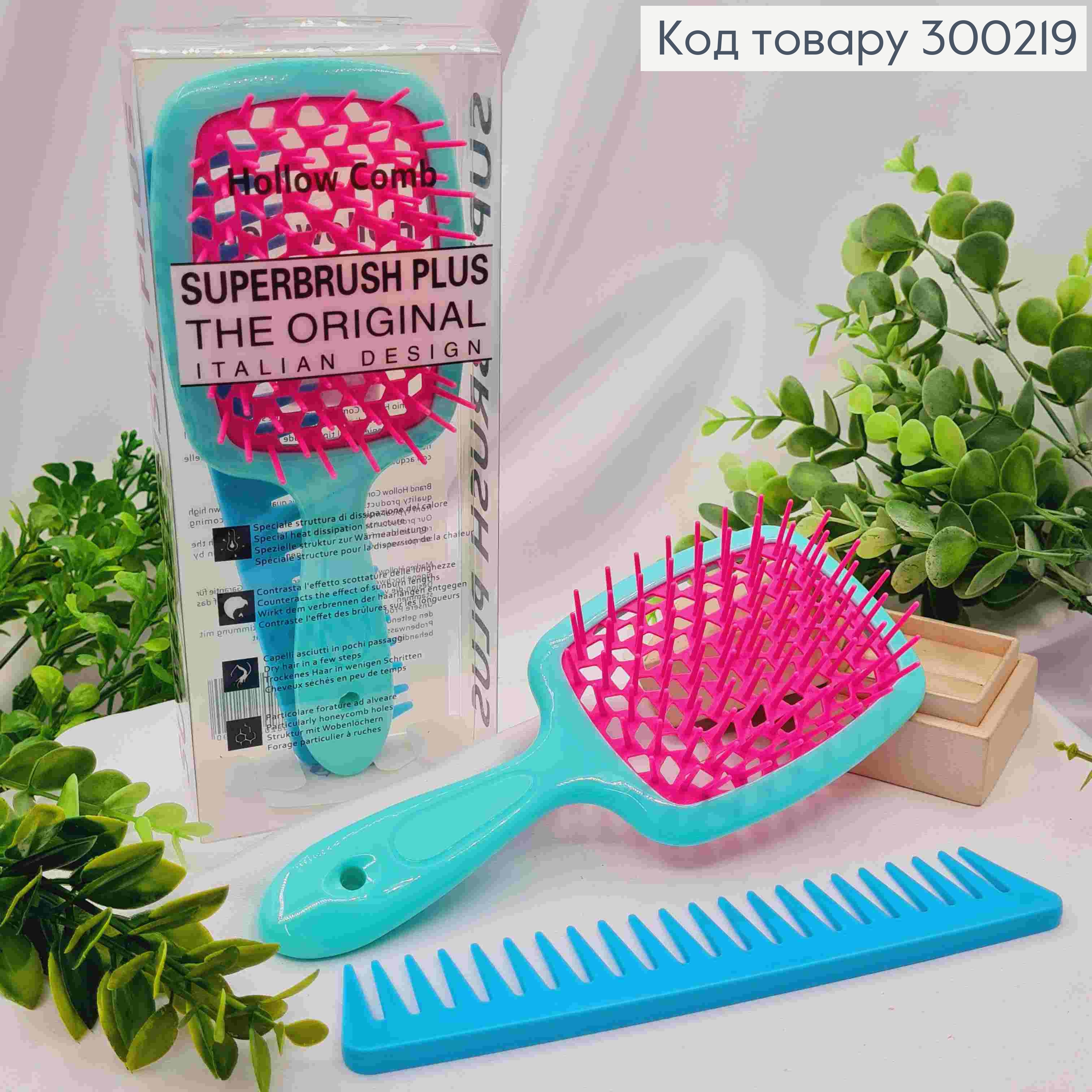 Набір: щітка для волосся Синя з Рожевим + Блакитний гребінь, "HollowComb" Superbrush, 20,5*8см 300221 фото