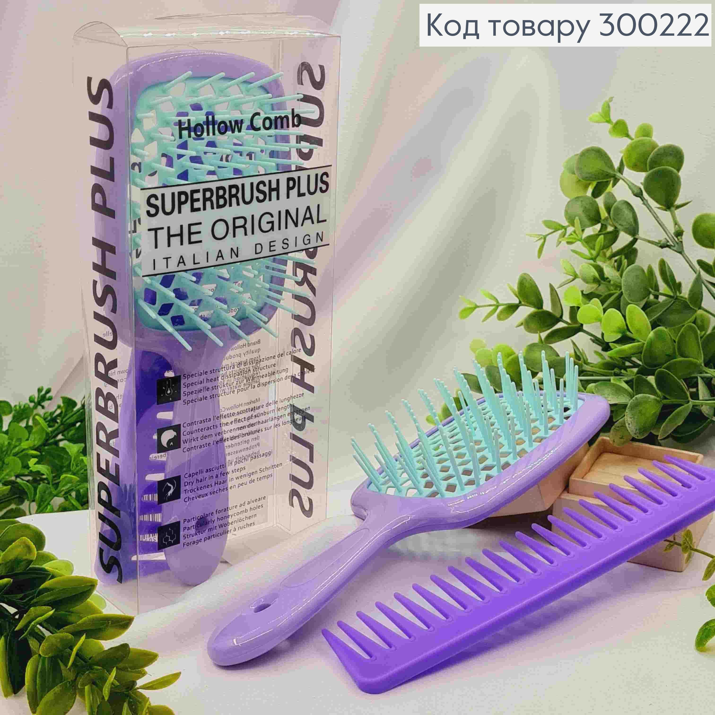 Набір: щітка для волосся Фіолетова з Рожевим + Фіолетовий гребінь, "HollowComb" Superbrush, 20,5*8см 300220 фото