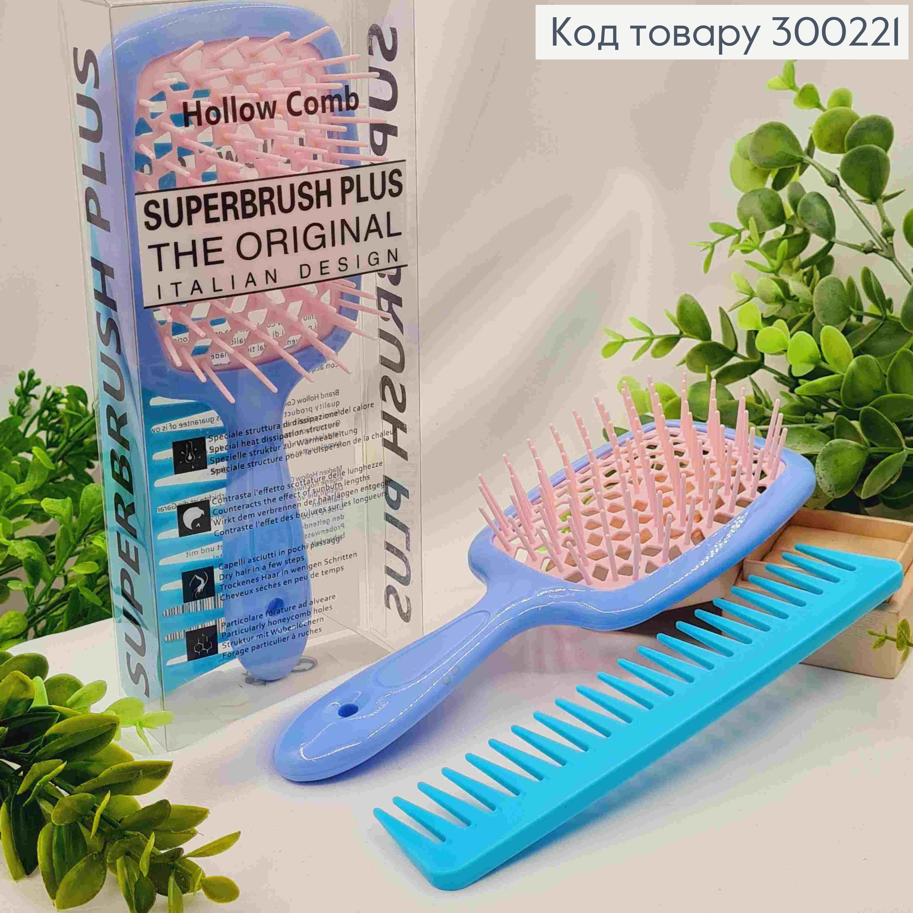 Набір: щітка для волосся Синя з Рожевим + Блакитний гребінь, "HollowComb" Superbrush, 20,5*8см