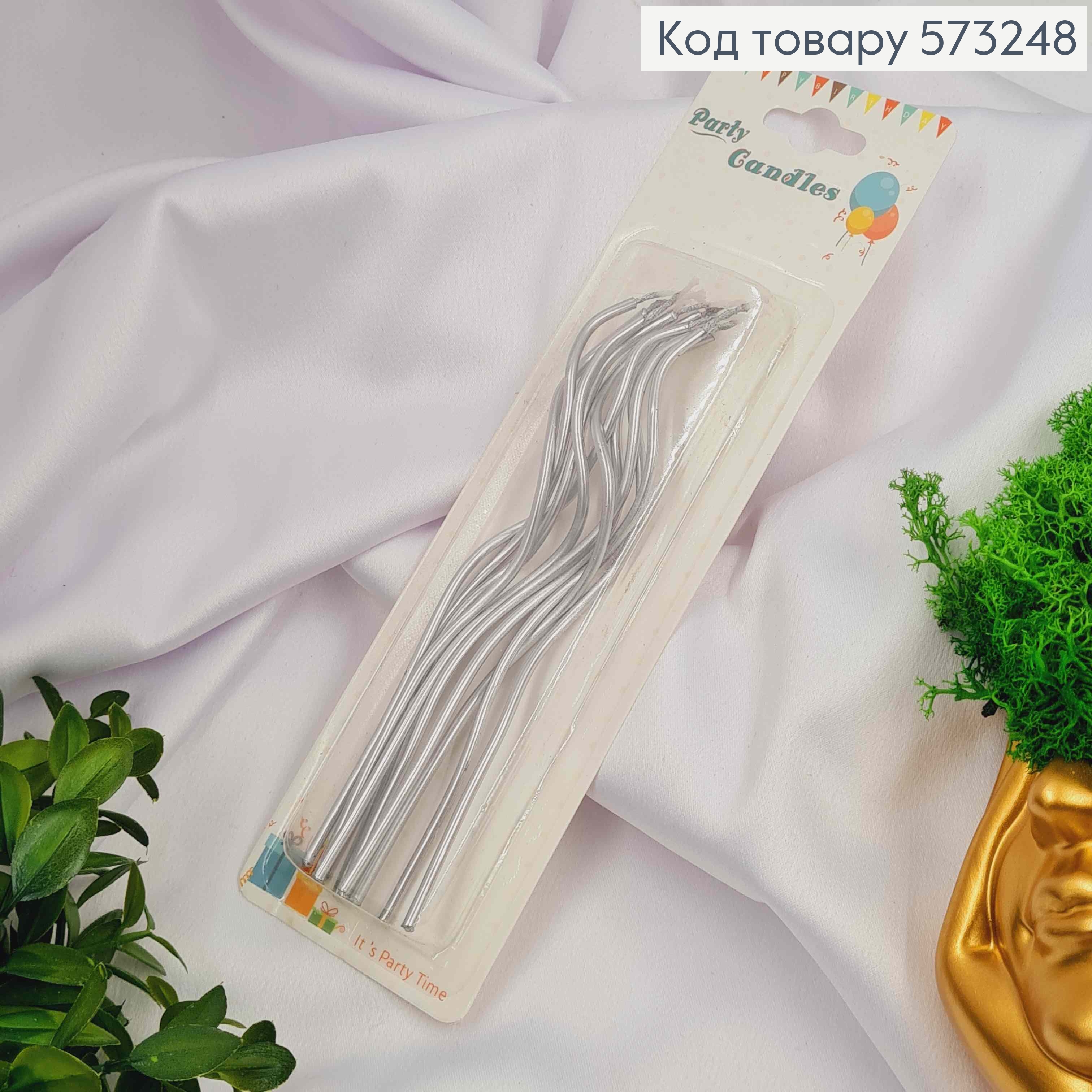 Свічки для торта Кручені, СРІБНІ з глітером,  12шт/уп, 11+4см 573638 фото