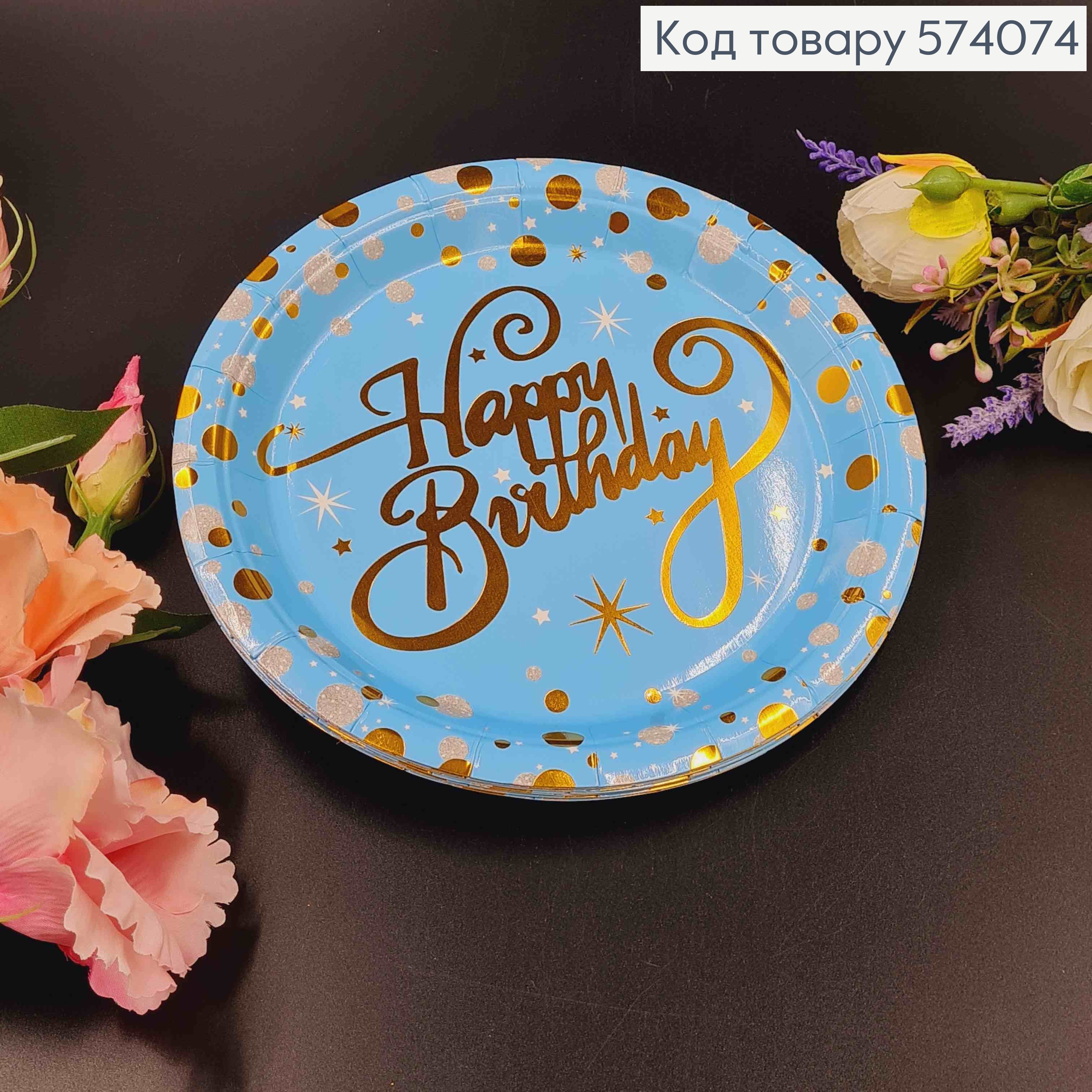 Набір тарілок паперових, голубого кольору в "Happy Birthday" горошок, 10шт/уп, 18см