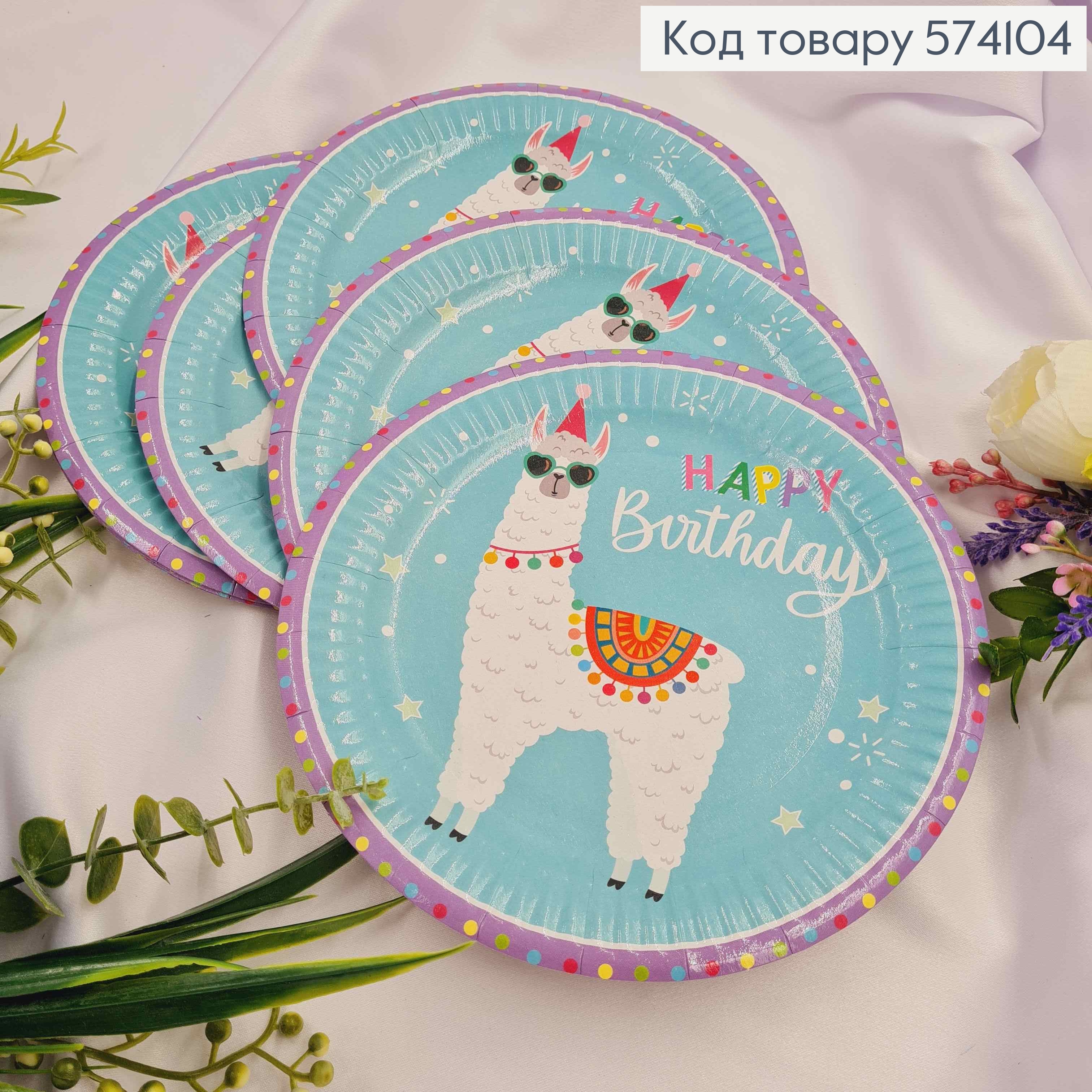 Набір тарілок паперових, "HAPPY BIRTHDAY", блакитного кольору з Ламою, 10шт/уп, 18см