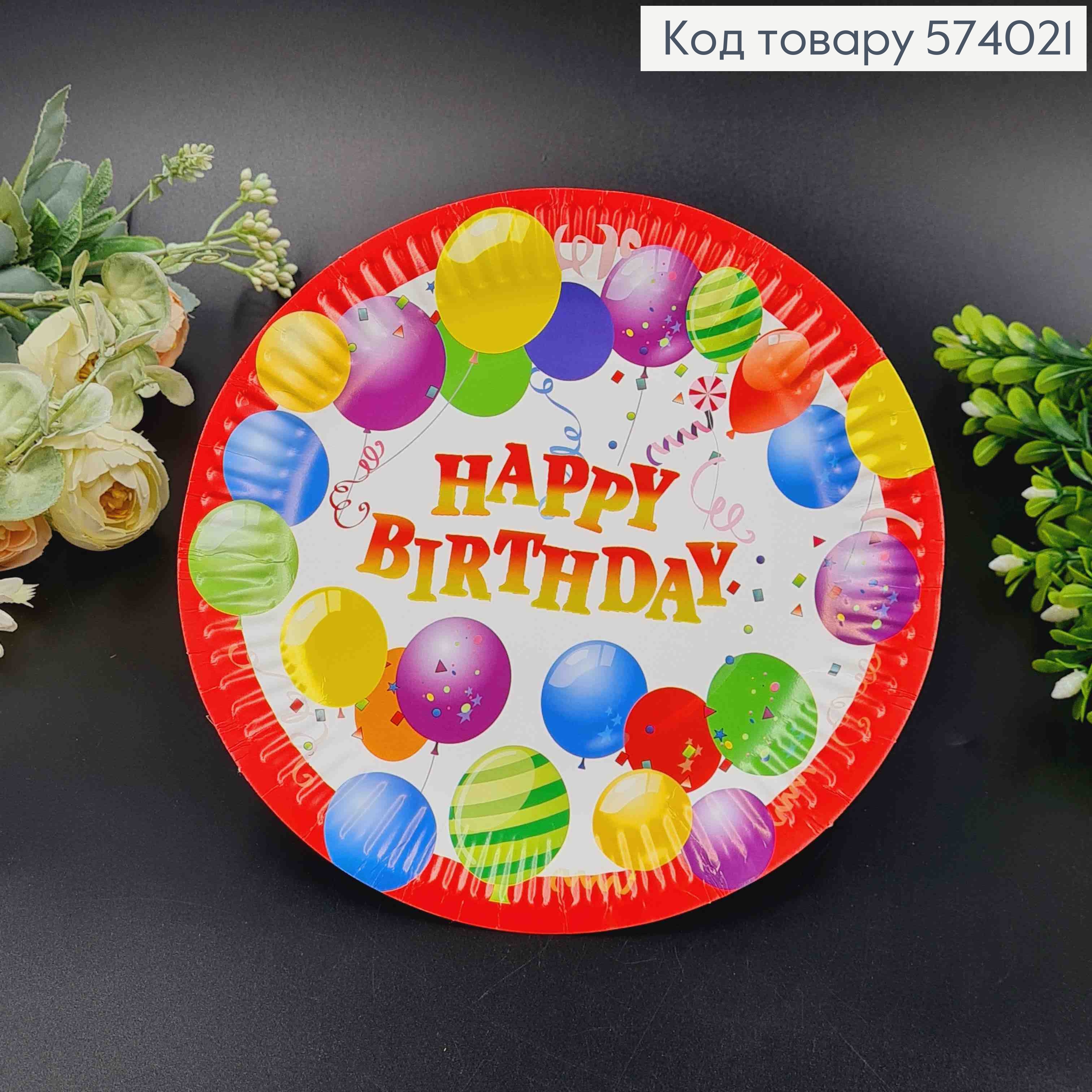 Набір тарілок паперових 18см, "Happy Birthday" із малюнком кульок 10шт/уп