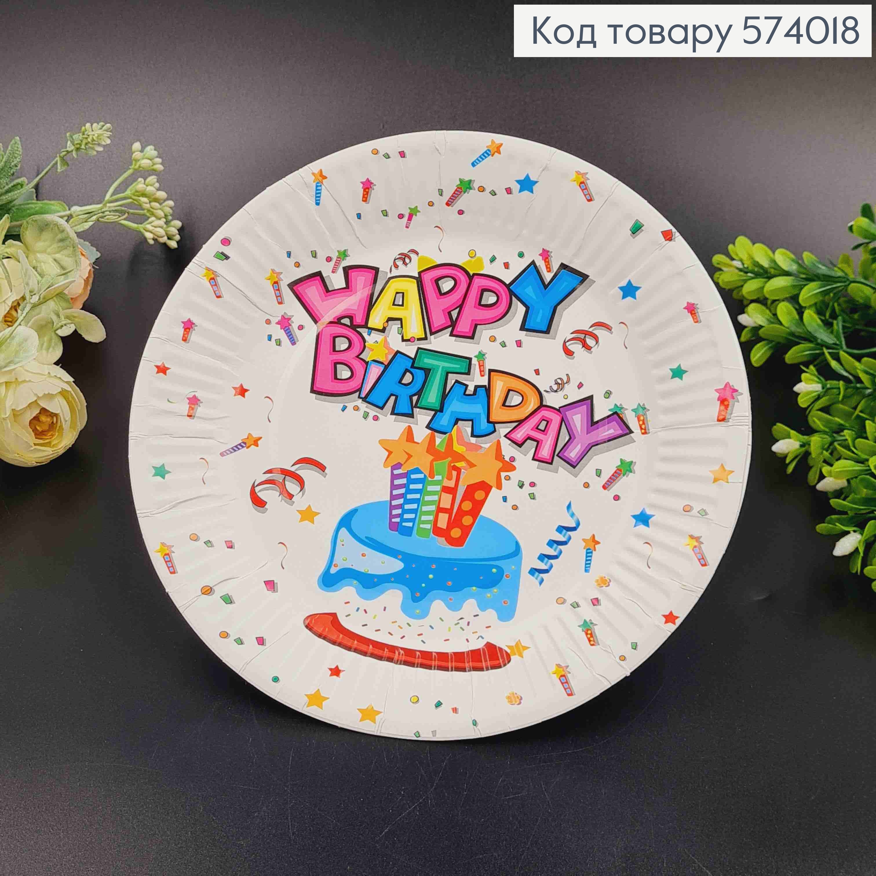 Набір тарілок паперових 18см, "Happy Birthday" із малюнком тортика 10шт/уп