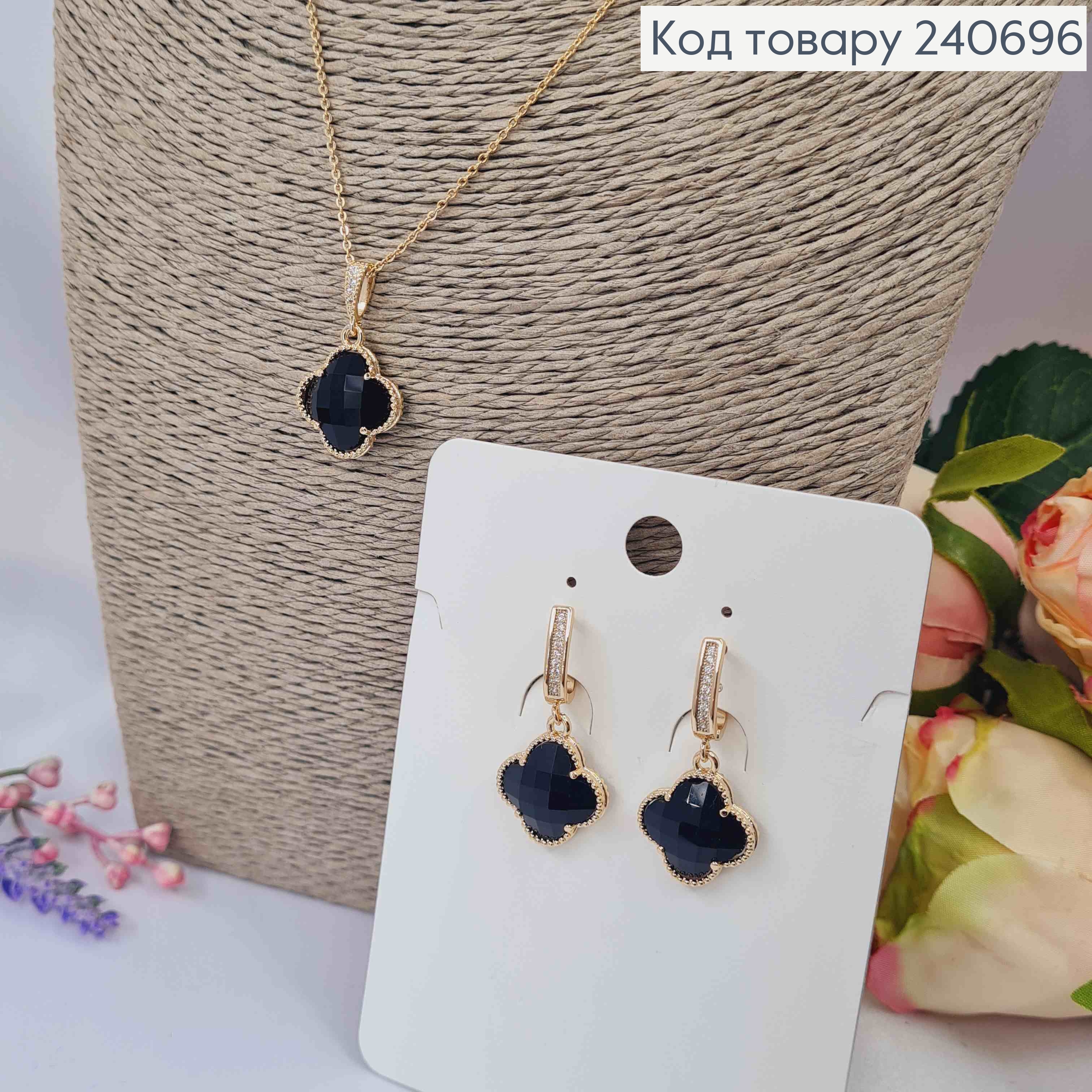 Набір "Van Cleef" Чорний: Ланцюжок(40+5), Сережки(1,2+1,8см), Лимонного кольору, Stainless Steel