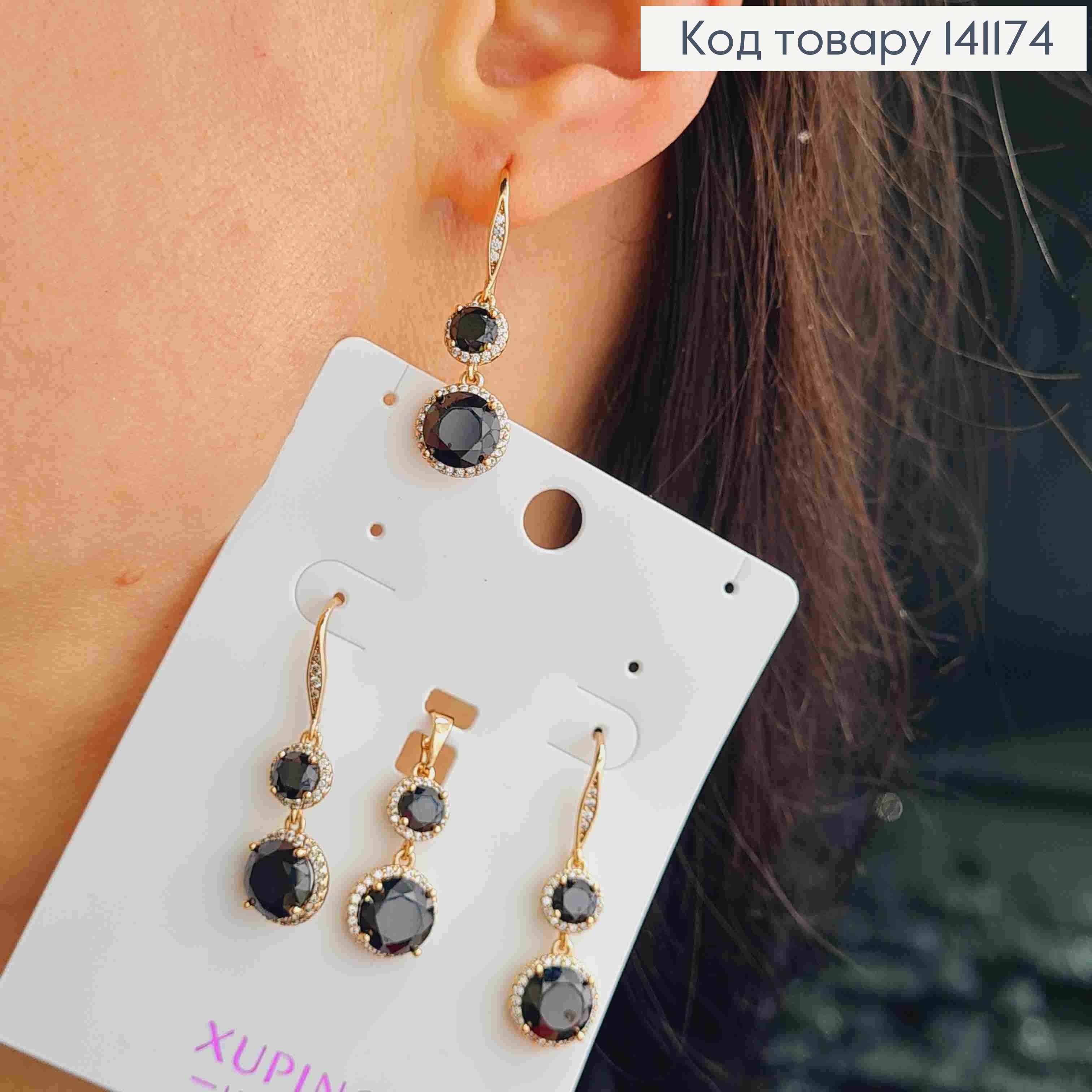Набір:  з Чорним каменем та Блискучими камінцями, Сережки гвіздки(1см), Кулон(1,5см), Xuping 18К 141172 фото