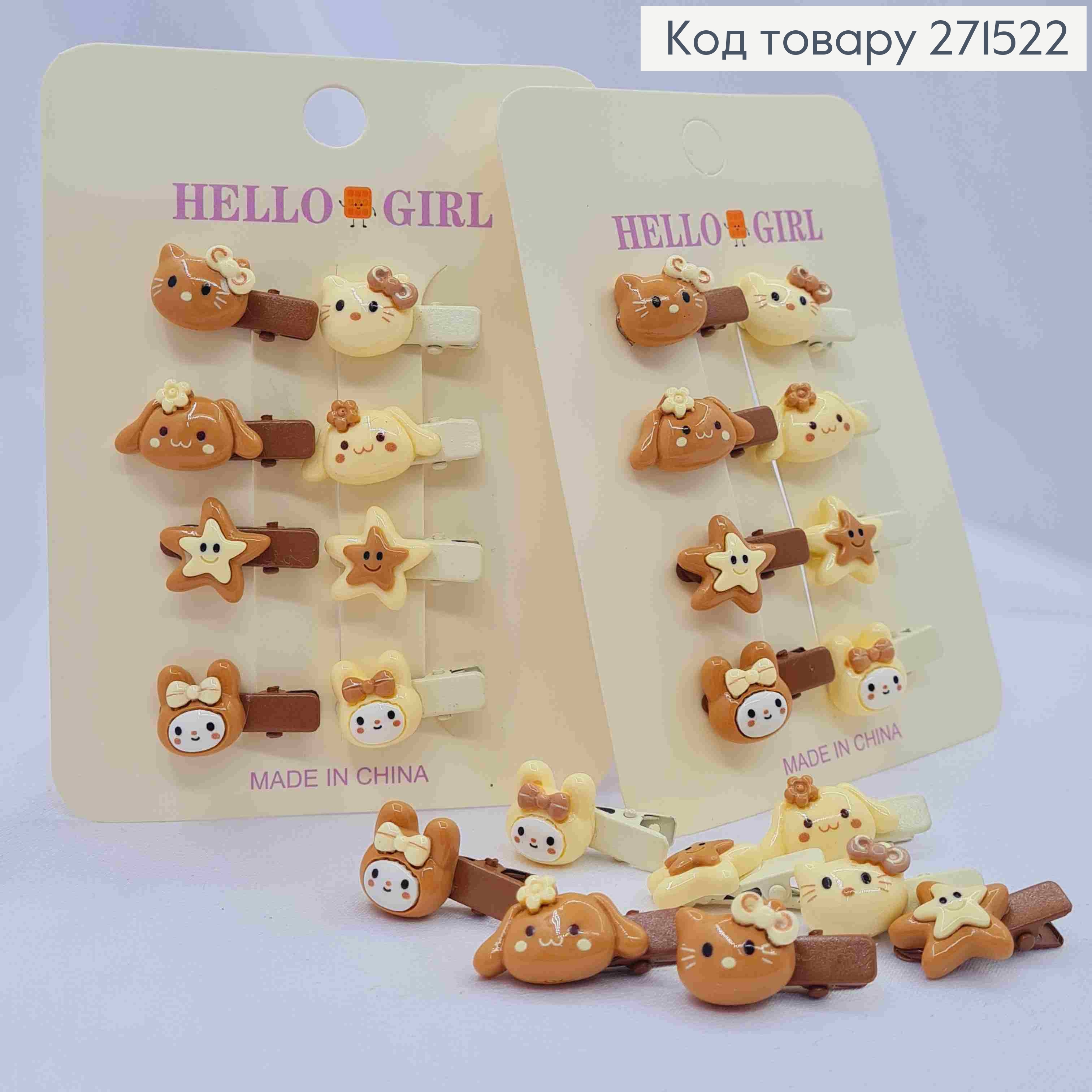 Набір заколка стріла (8шт), "Веселі Звірятка", Пастельні кольори, заколка 2см, звірята 1,5*1,5см