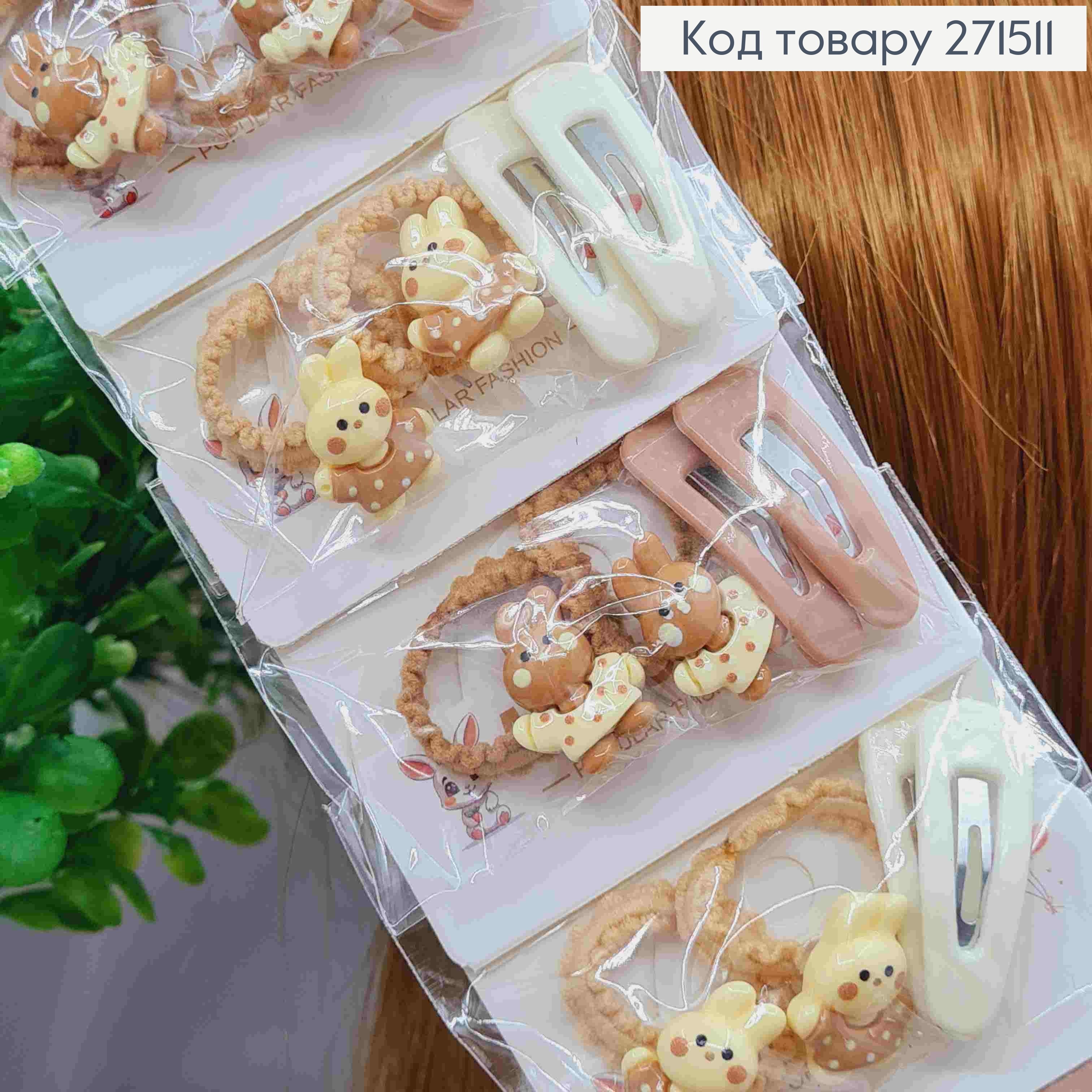 Набір дитячих : резинки Мікрофібра/ Шнурок + Краби "Зайченя","Прямокутні" в асорт., Яскраві кольори