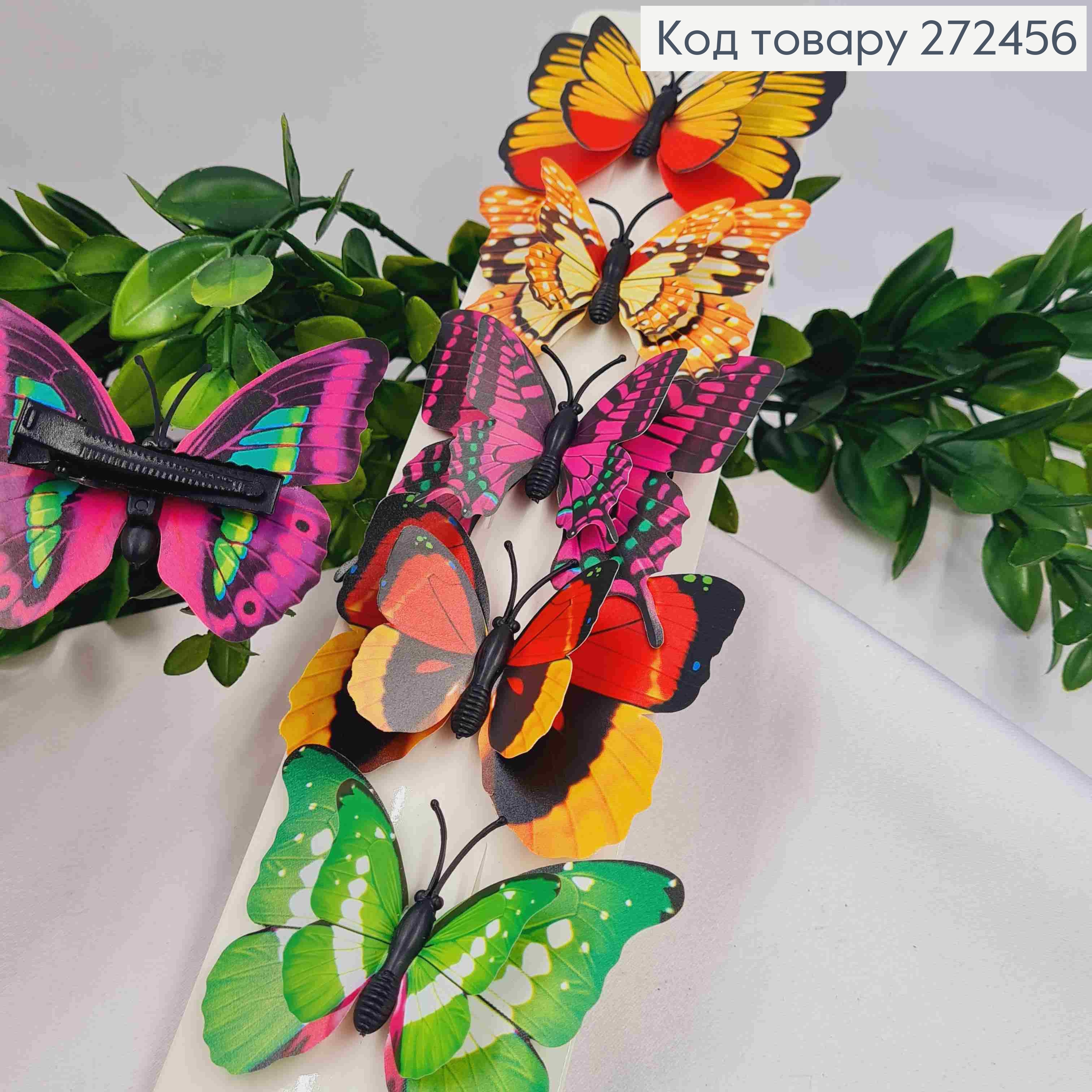 Набір заколок дитячих (6шт/уп) МЕТЕЛИКИ яскравих кольорів з Подвійними крилами, 7*5см пластикові