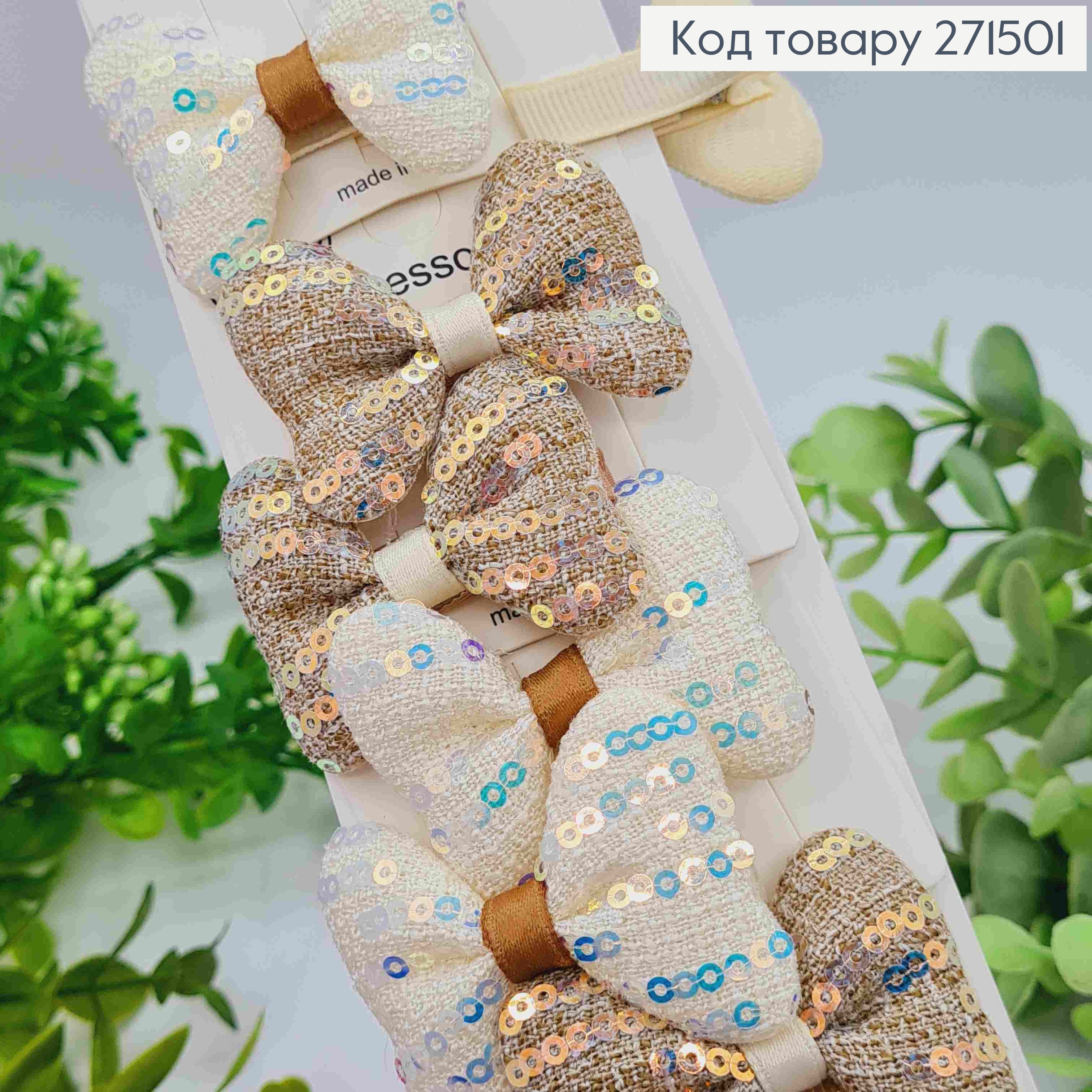 Набір заколок стріла (20шт) "БАНТИК" в паетках, Пастельні кольори, заколка 3,5см, бантик 4,5*4см