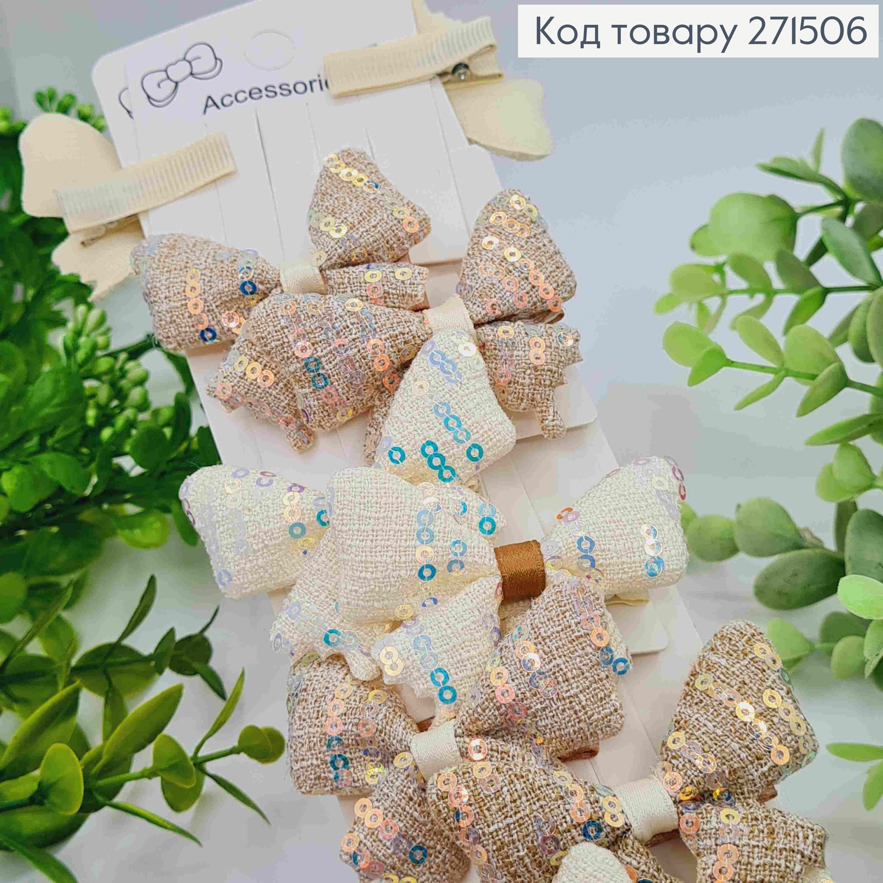 Набір заколок стріла (20шт) "БАНТИК" в паетках, Пастельні кольори, заколка 3,5см, бантик 5*4,5см