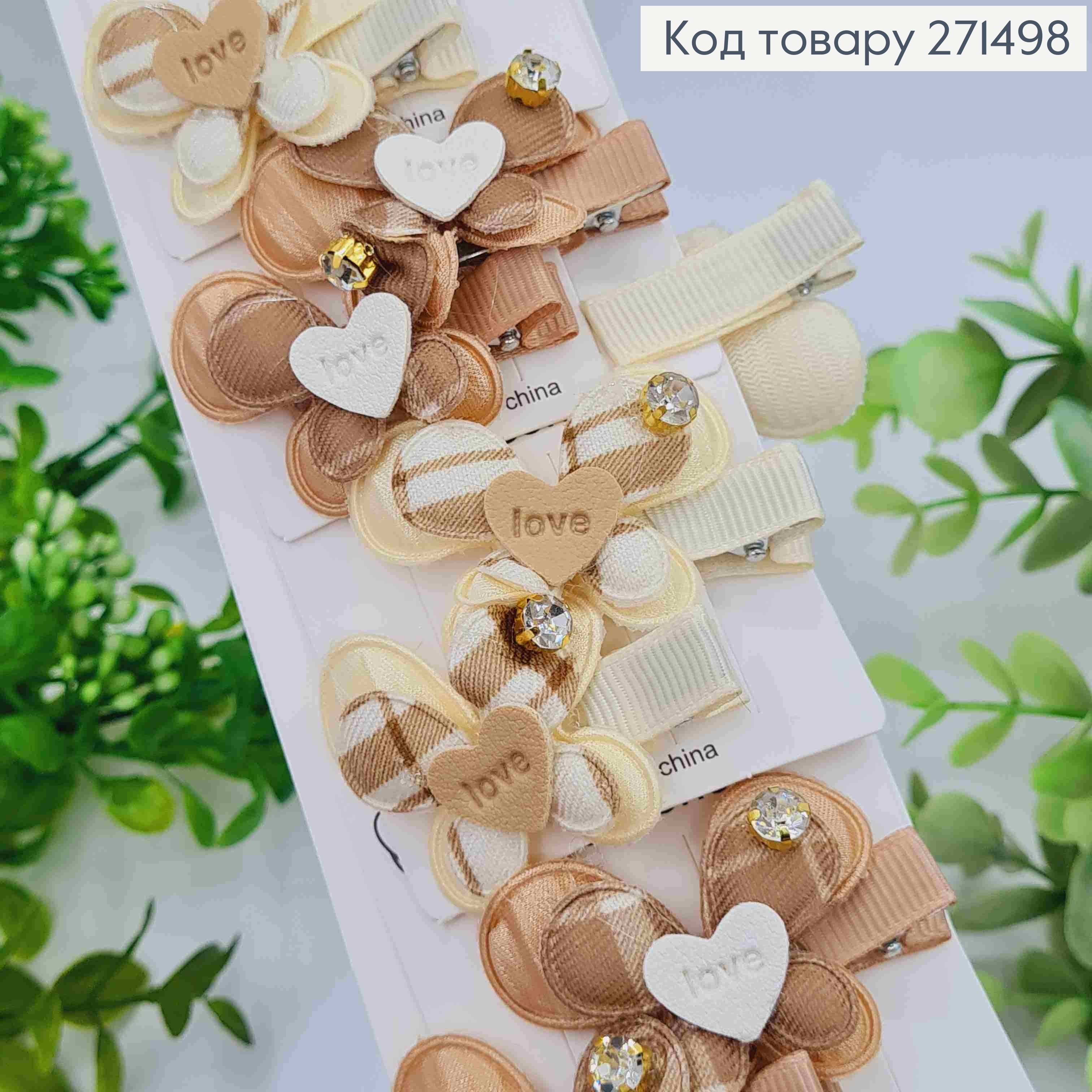 Набір заколка стріла(8шт), Квіточка та Бант, Коричнево-Пастельного кольору, заколка3,5см, бант4;6см 271524 фото