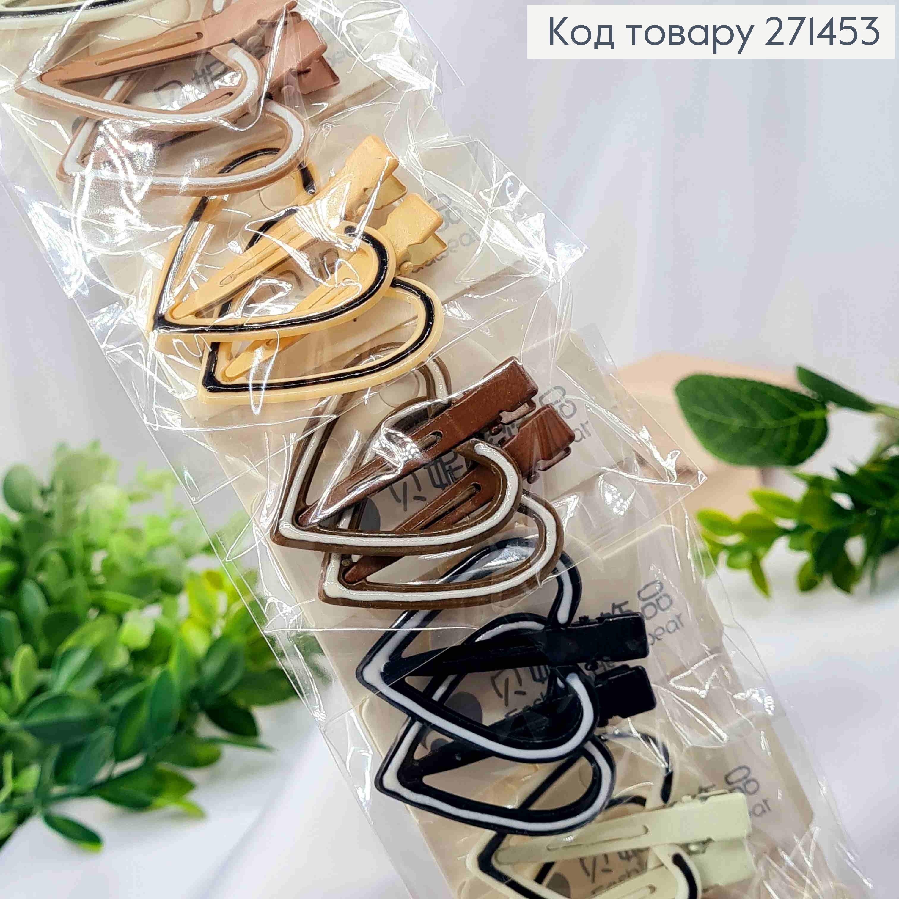 Набір заколка тік-так (20шт), "Сердечко" з Камінцями, Пастельні кольори, заколка 4,5см, серце 2,5см 271517 фото