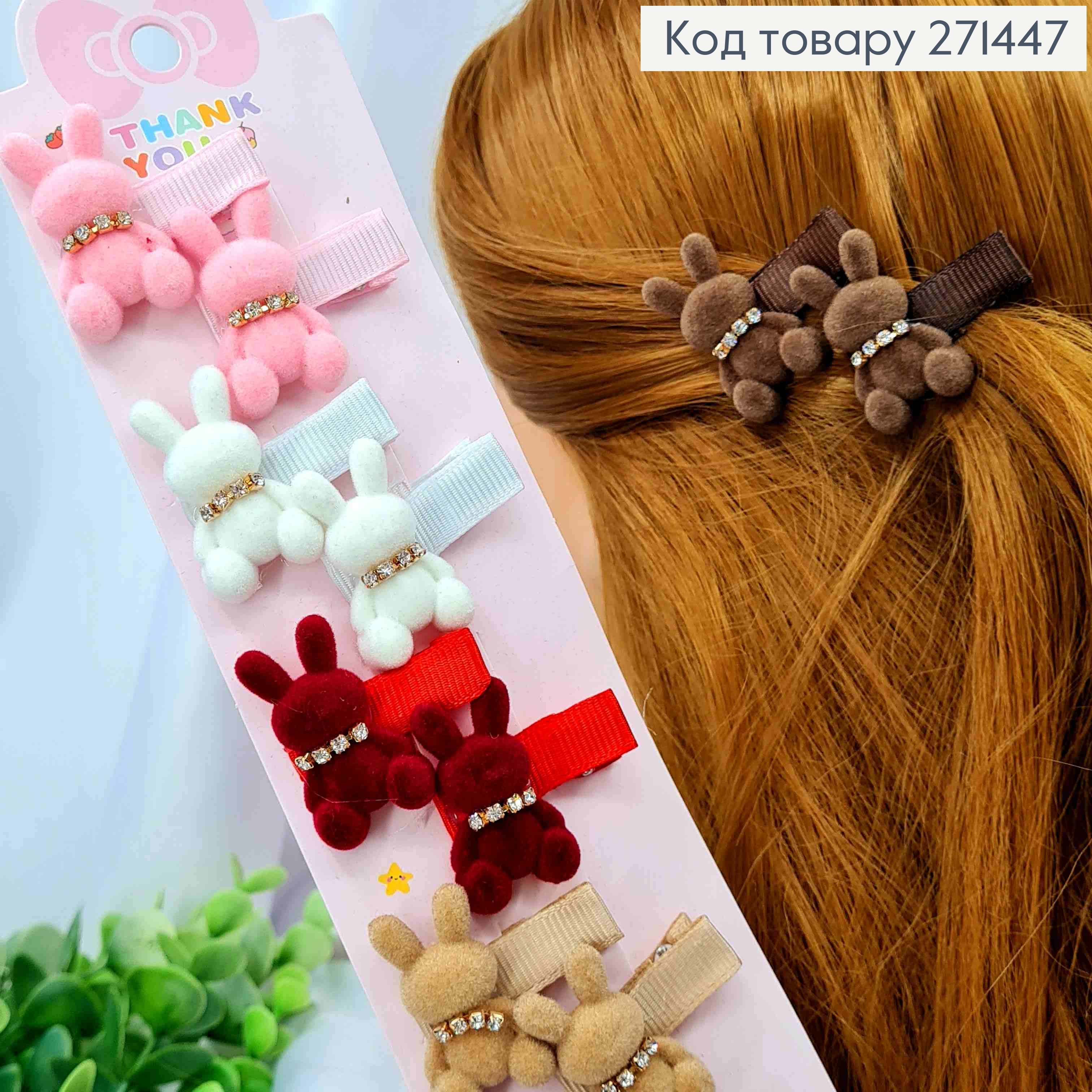 Набір заколок Стріла (20шт), ЗАЙЧЕНЯ з камінцями, Яскраві кольори, заколка 3см, зайченя 2*3см