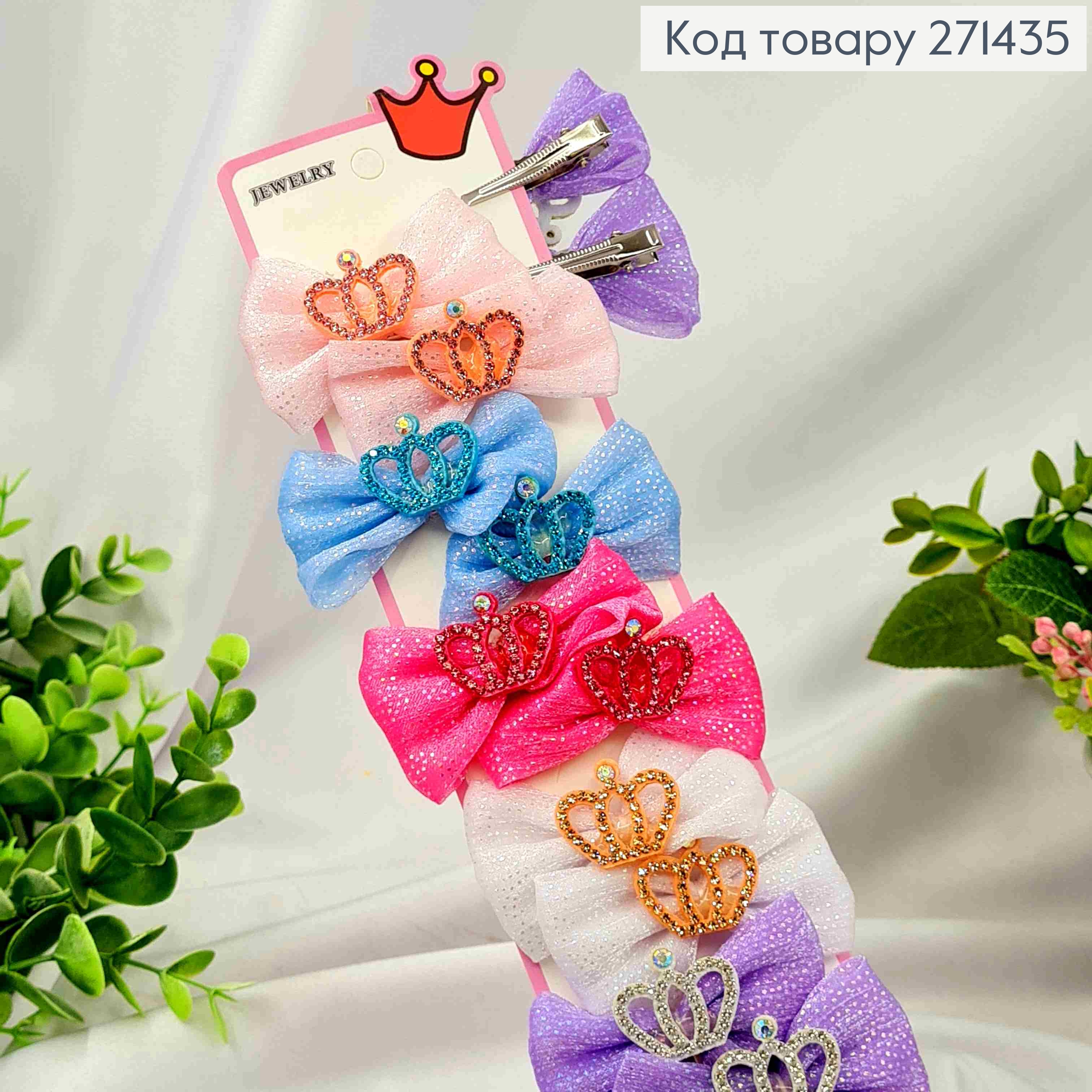 Набір заколок Стріла(20шт/10пар) БАНТИК + КОРОНА в камінцях, Яскраві кольори, заколка 4см, бант6*4см
