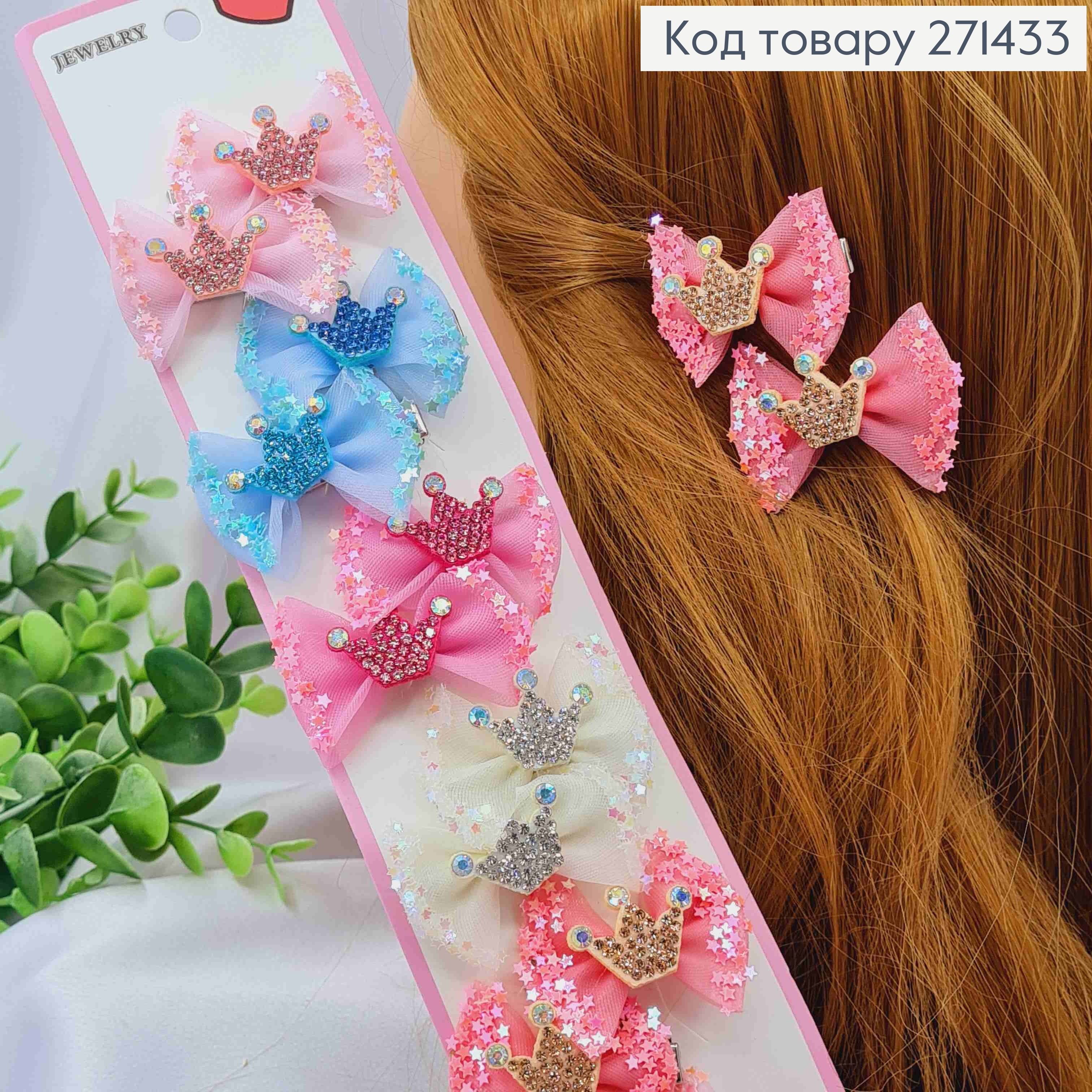 Набір заколок Стріла(20шт/10пар) БАНТИК з КОРОНОЮ в камінцях, Яскраві кольори, заколка4см, бант4*3см
