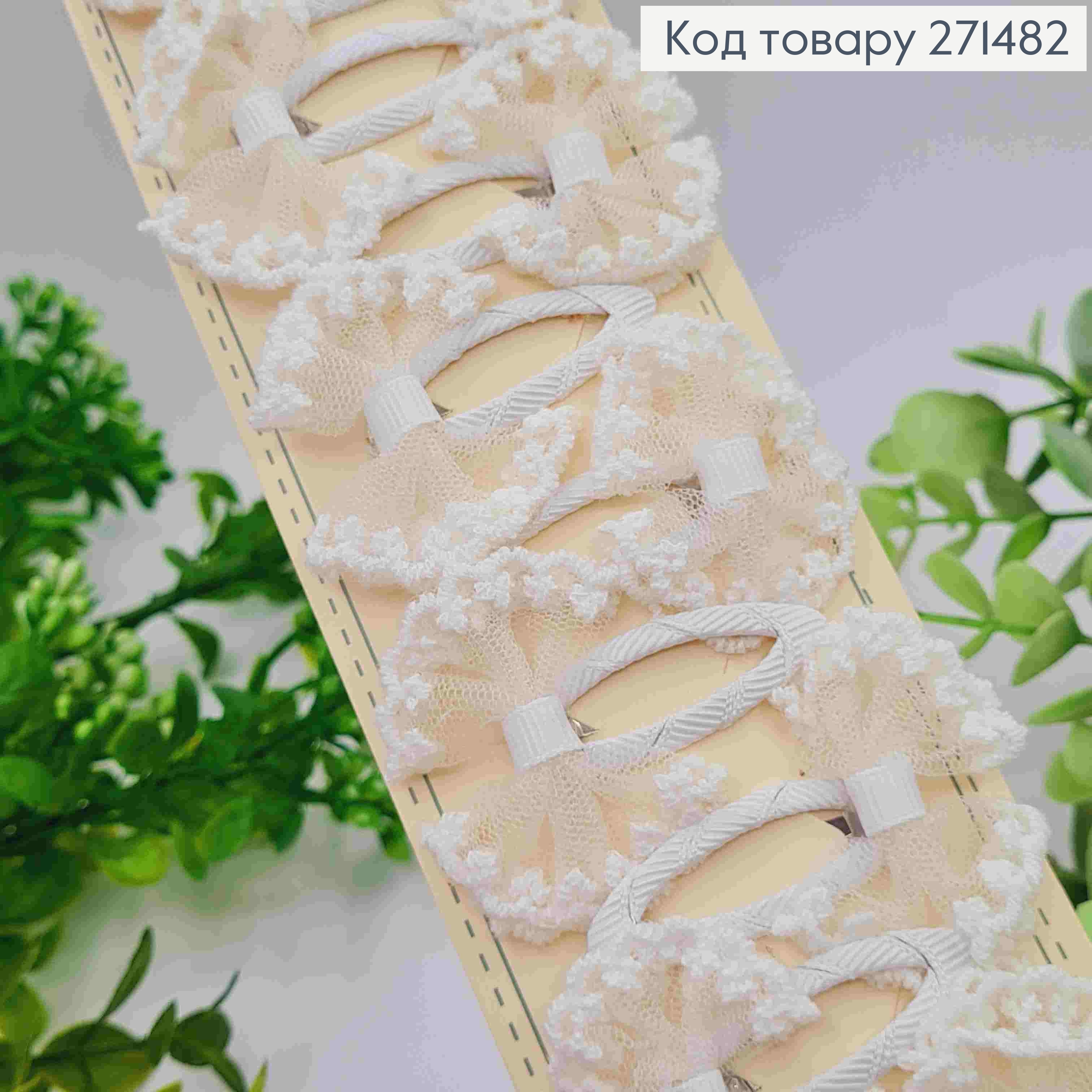 Набір заколок Тік-так (20шт), АЖУРНИЙ БАНТИК, Білого кольору, заколка 4см, бант 3,5*3см