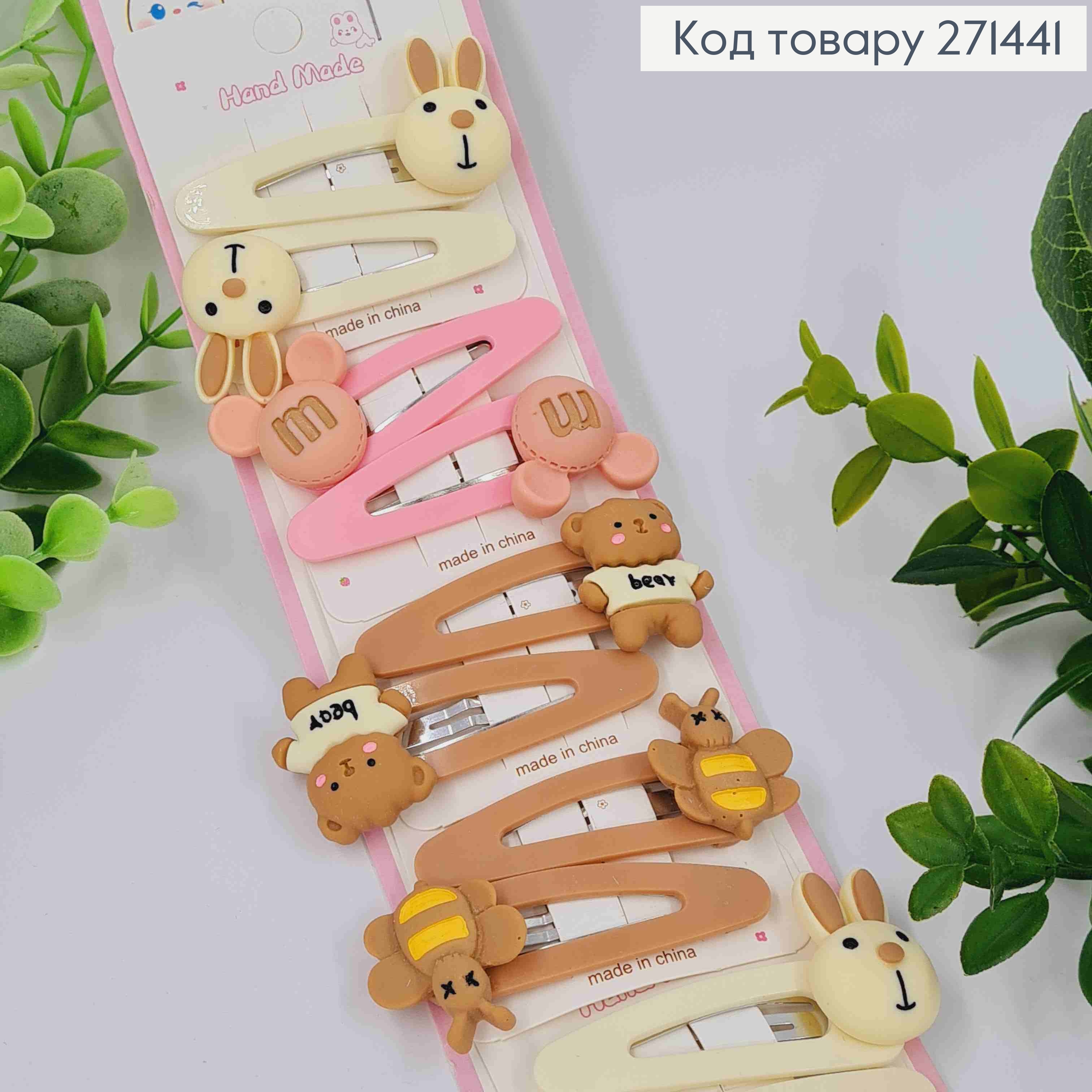 Набір заколка стріла (8шт), "Веселі Звірятка", Пастельні кольори, заколка 2см, звірята 1,5*1,5см 271522 фото