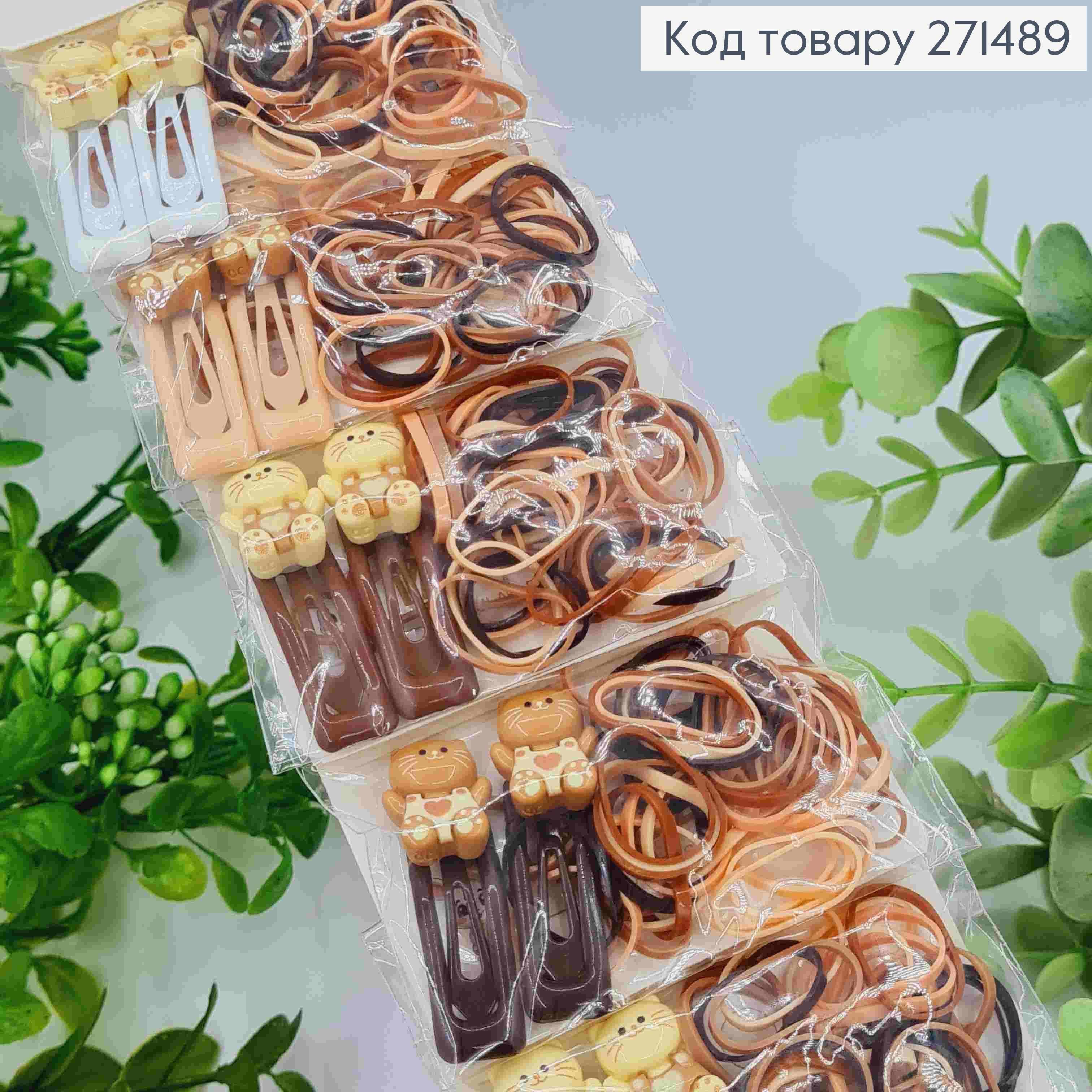 Набір дитячих : резинки Шнурок/ Силіконова +  Крабіки + Заколка стріла, Пастельні кольори в асорти 251091 фото
