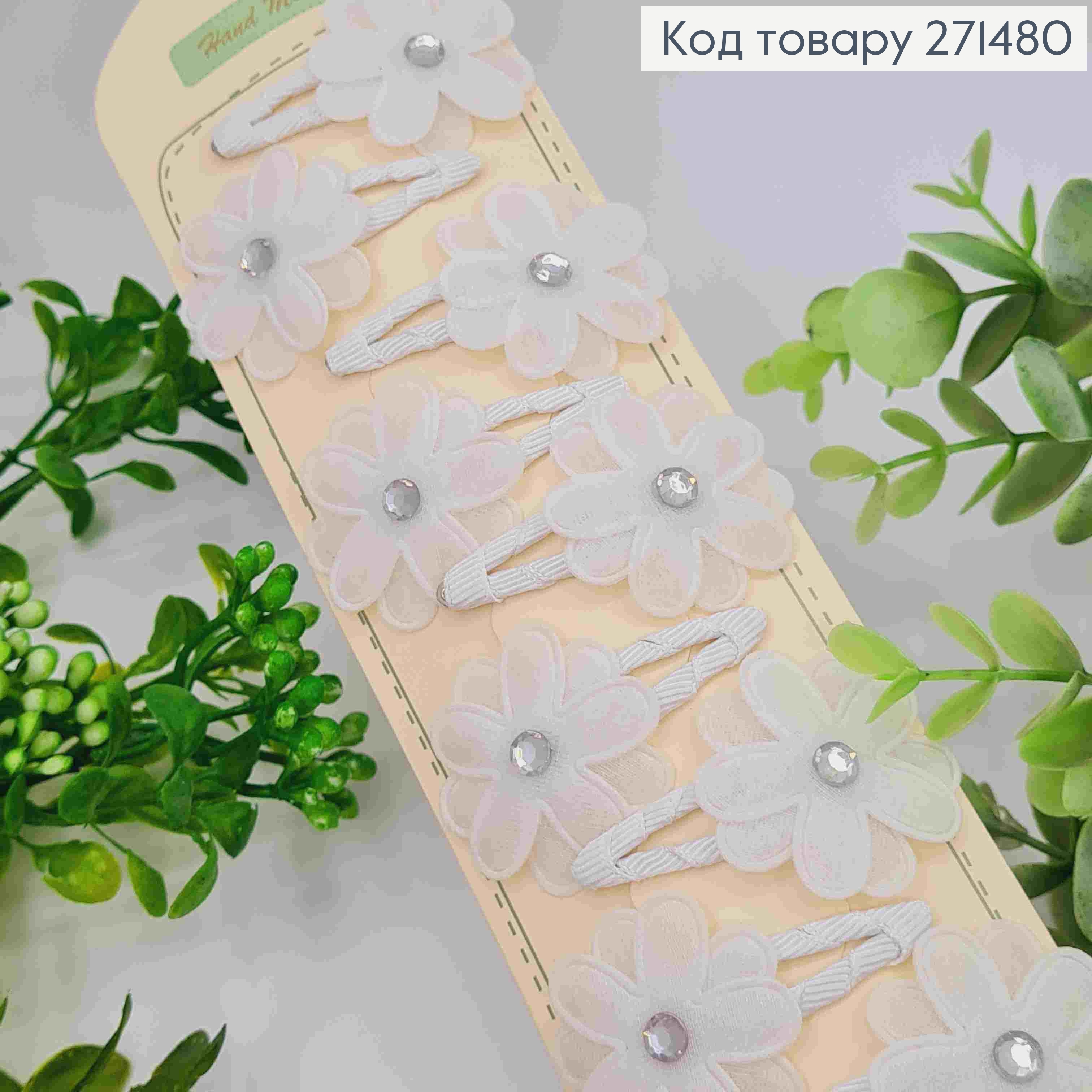 Набір заколок Тік-так (20шт), КВІТОЧКА, Білого кольору, заколка 4см, квітка 3,5см
