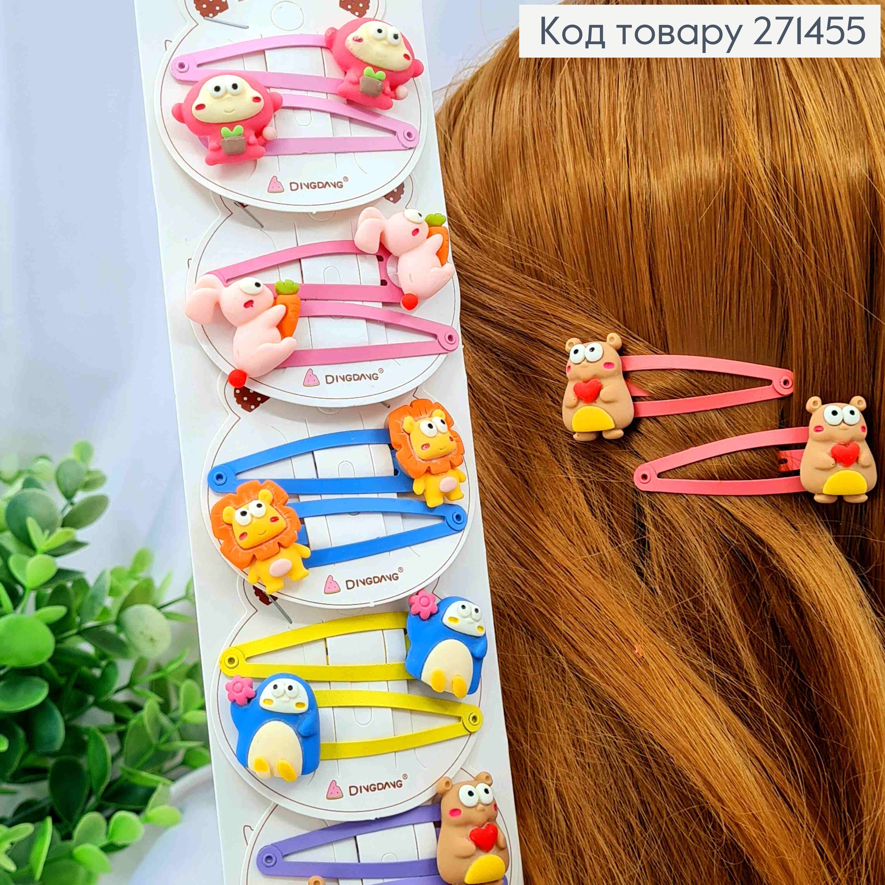 Набір заколок Тік-так (20шт), веселі ЗВІРЯТКА, Яскраві кольори, заколка 5см, звірята 1,5*2см