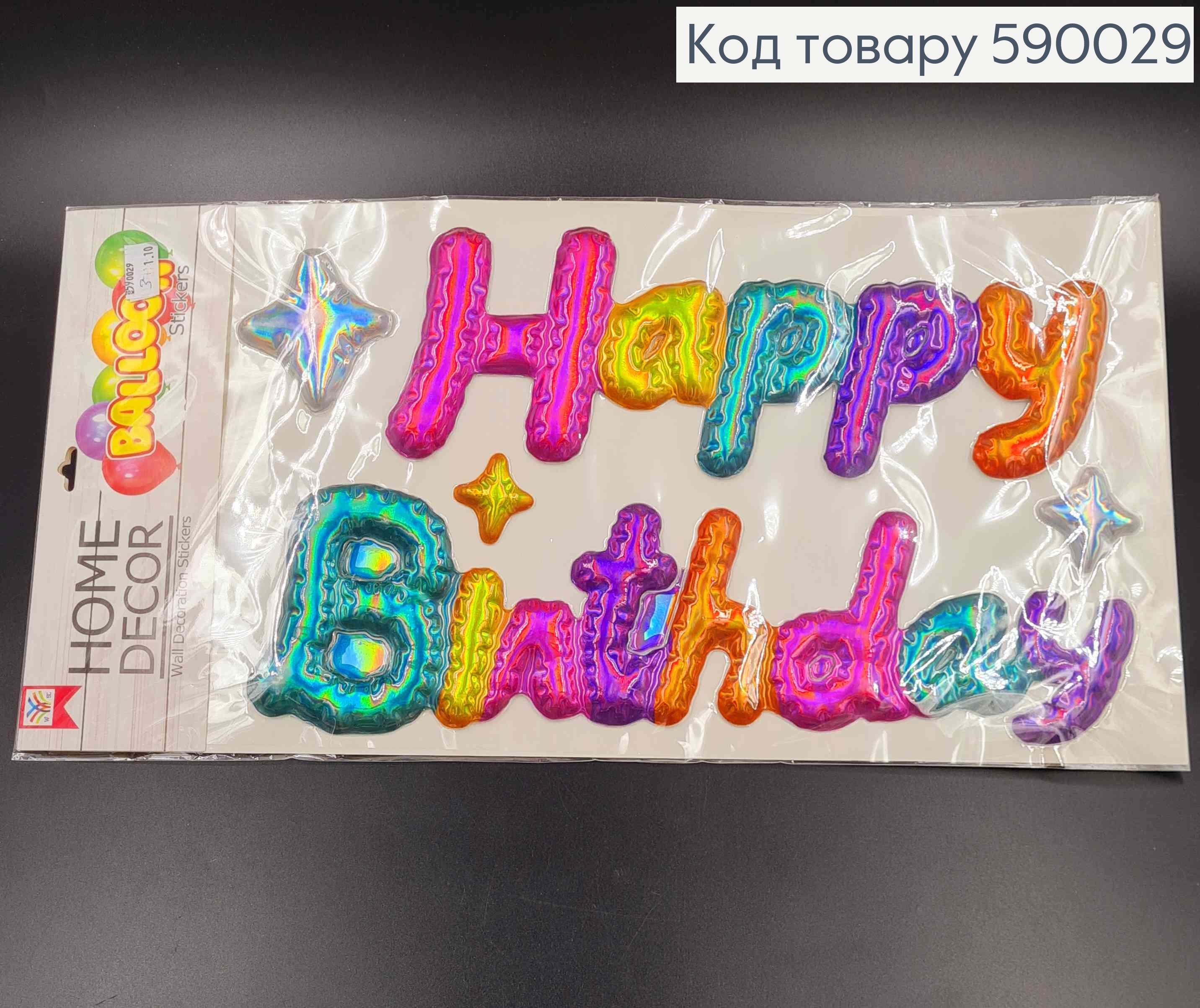 Наклейка "Happy Birthday", кольорова, голографічна, (30*12, 38*12)