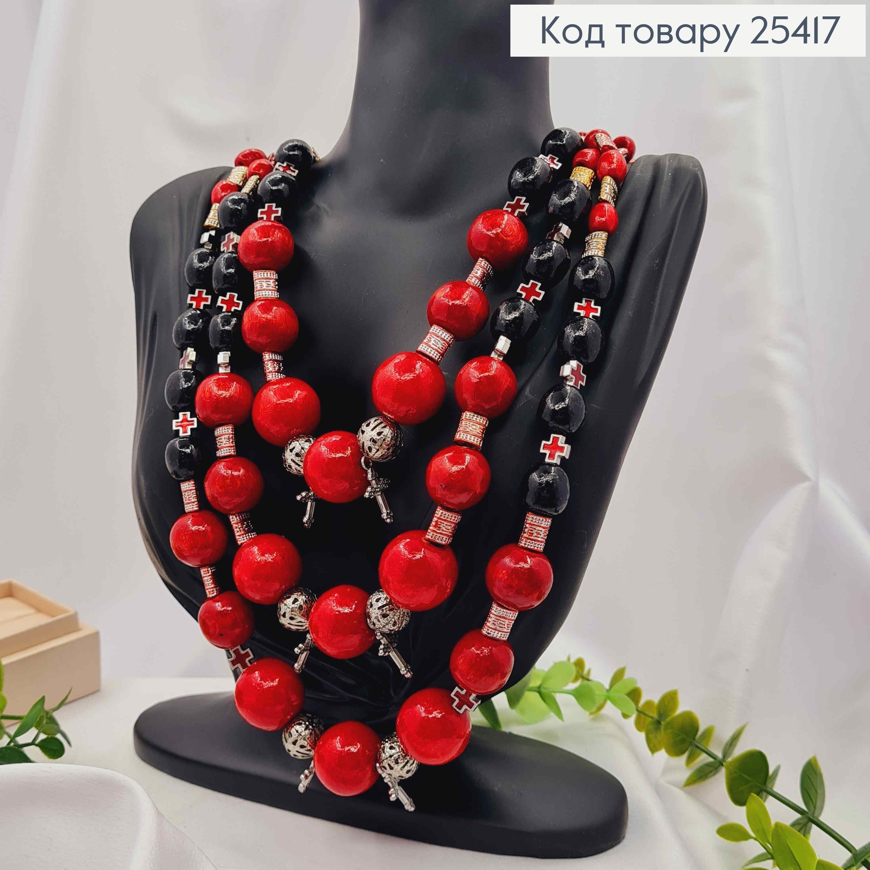 Намисто дерев'яне, в етнічному стилі, ЧЕРВОНО-ЧОРНОГО кольору, на зав'язках, 70см, ручна робота 25419 фото