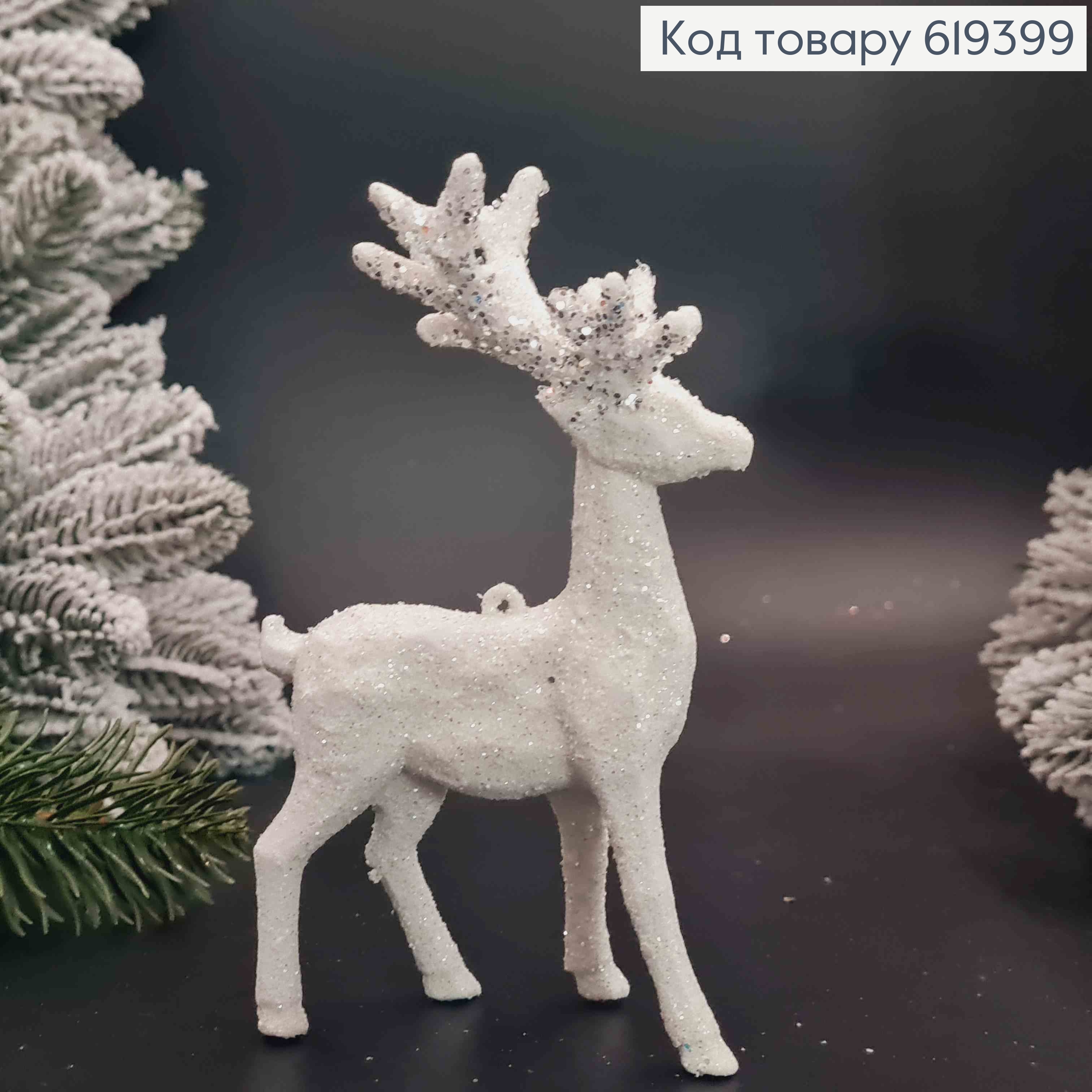 Новорічна фігура "ОЛЕНЬ", колір БЛИСК БІЛИЙ, пластик, 15*7см, Україна