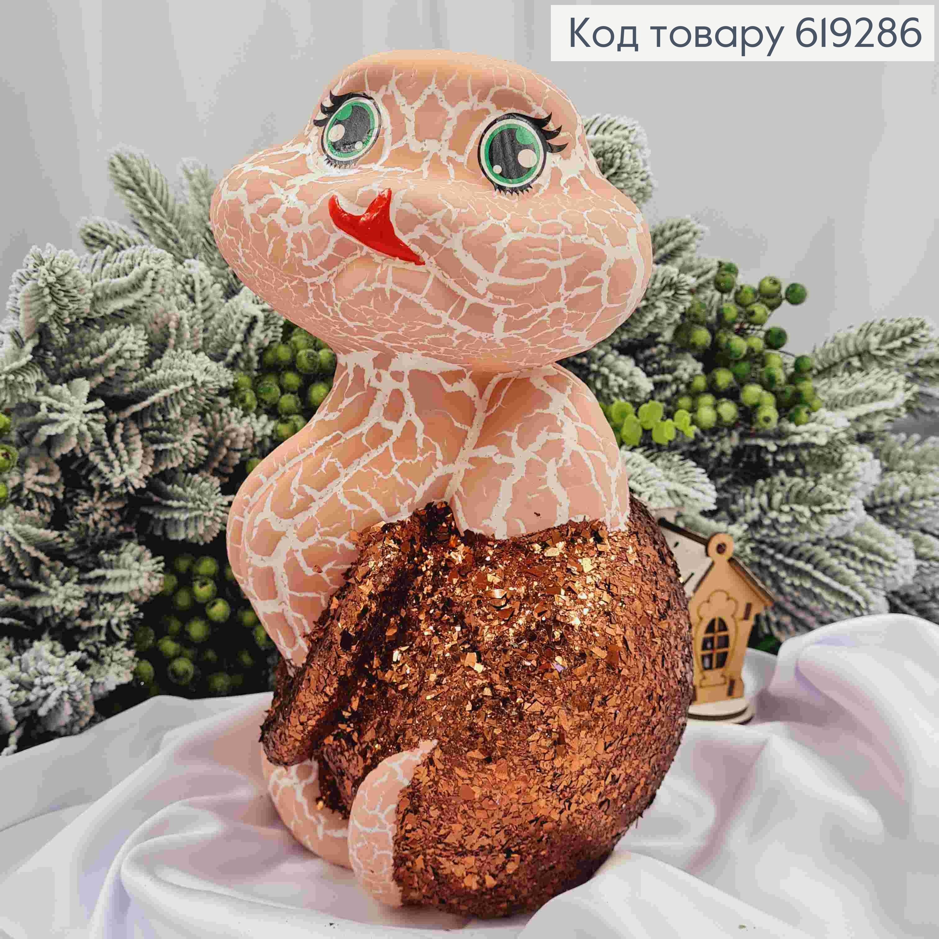 Новорічна фігура ЗМІЯ велика, ПЕРСИКОВА, "МАРМУР", висота 30см,ширина 16,5см, пластик,Україна