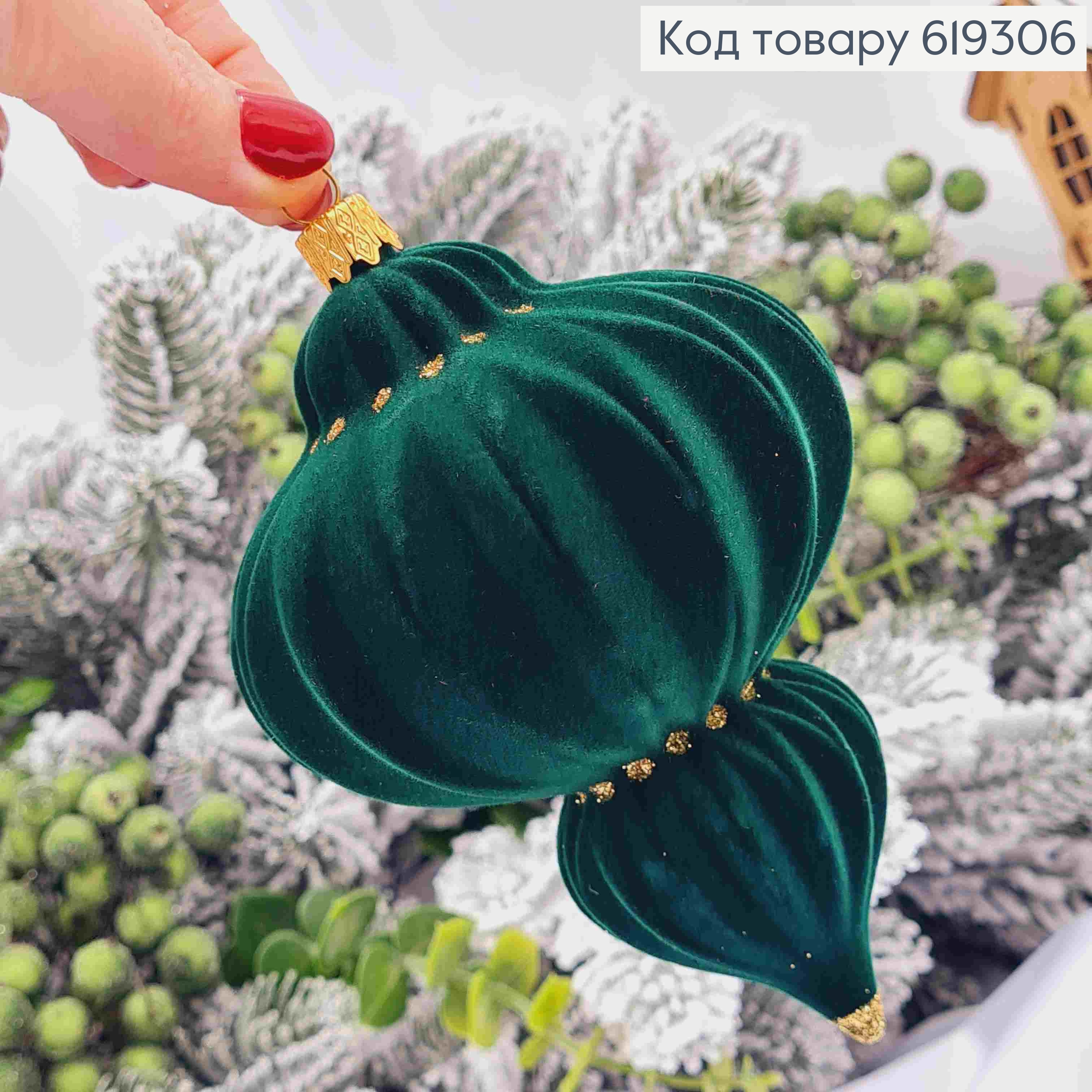 Новорічна іграшка "КОНУСНА БУРУЛЬКА", СМАРАГД оксамит з ЗОЛОТОМ, висота 13см, діам.9см,4,5см,Україна