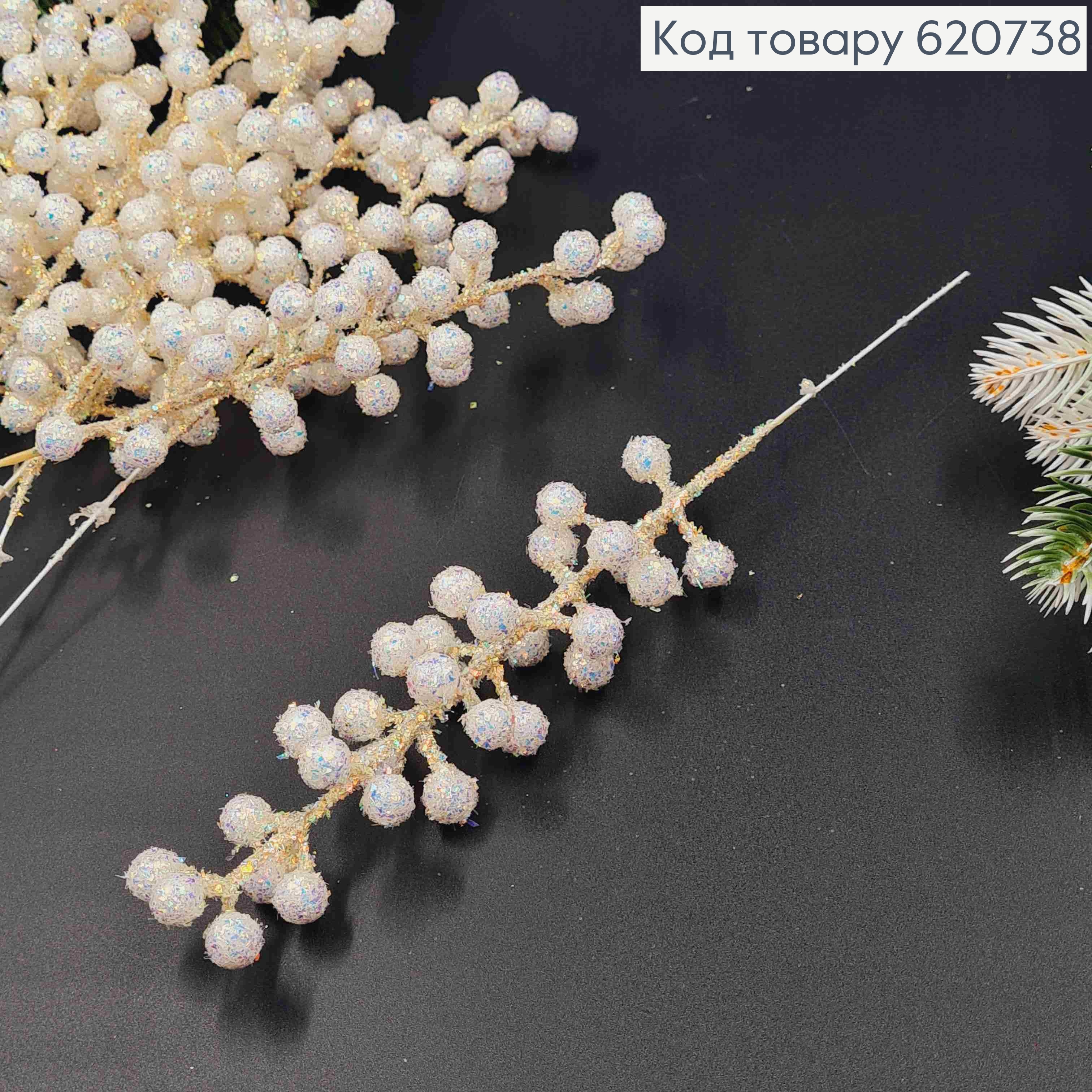 Гілочка з Ягідками, БІЛОГО БЛИСК кольору, на металевому стержні, вис 24см