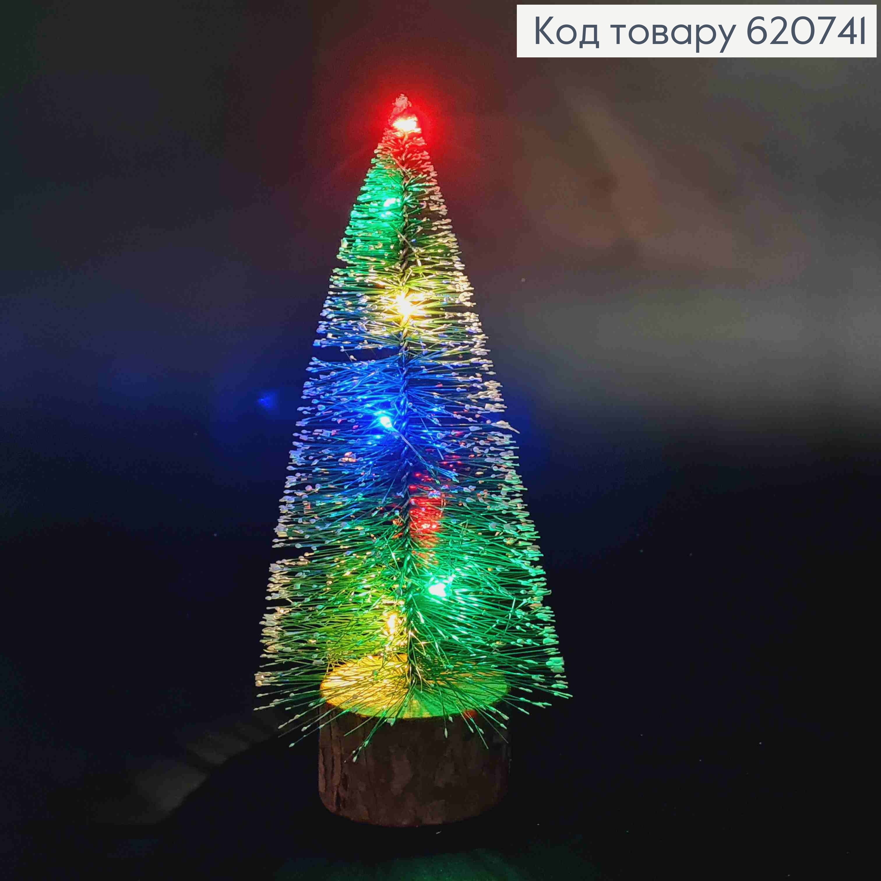 МІНІ ЯЛИНКА (світиться), ЗЕЛЕНОГО кольору, на дерев'яній підставці, вис 21см. новорічний декор