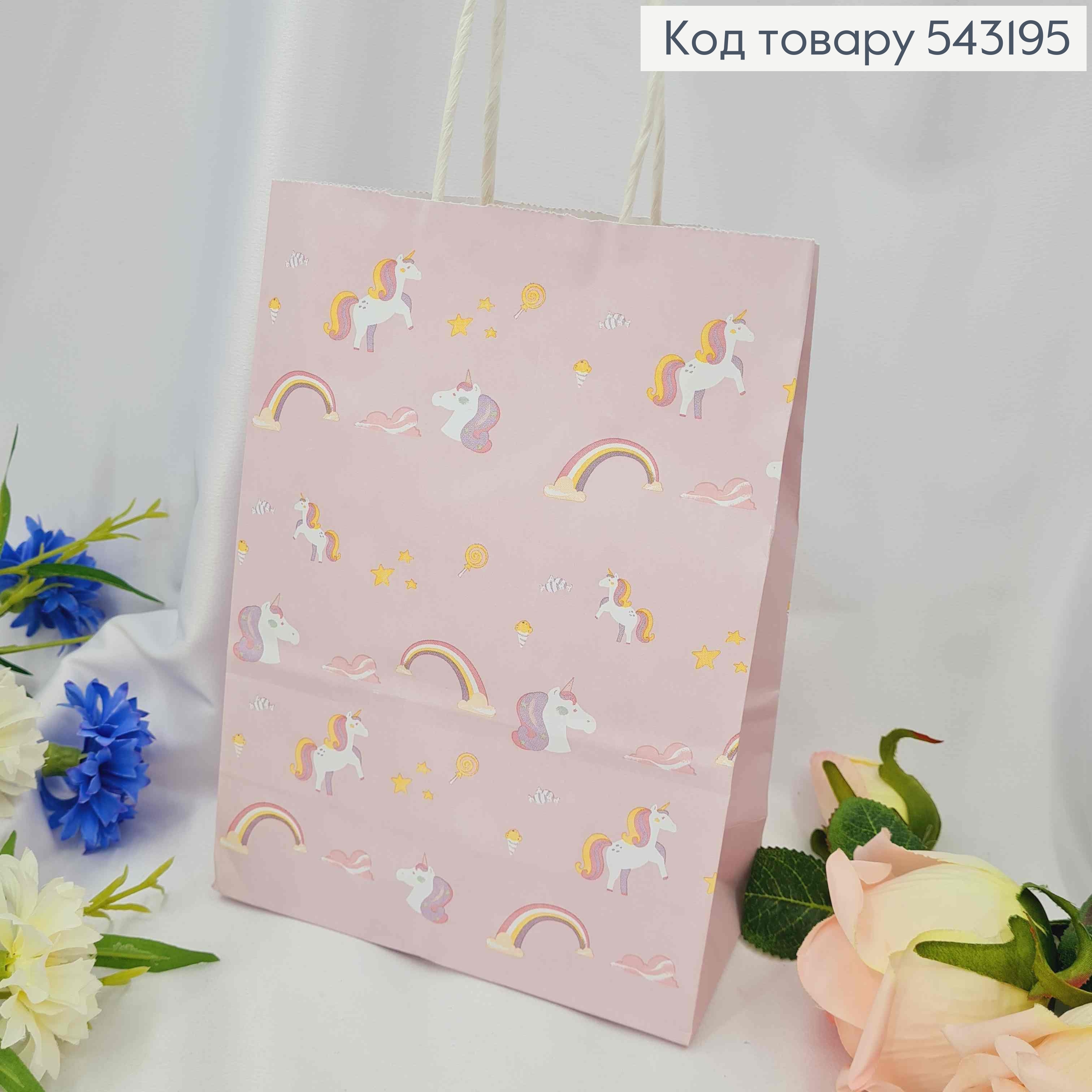 Пакет крафтовий, 16*22*8см, Блідо-Рожевий з Єдинорогом