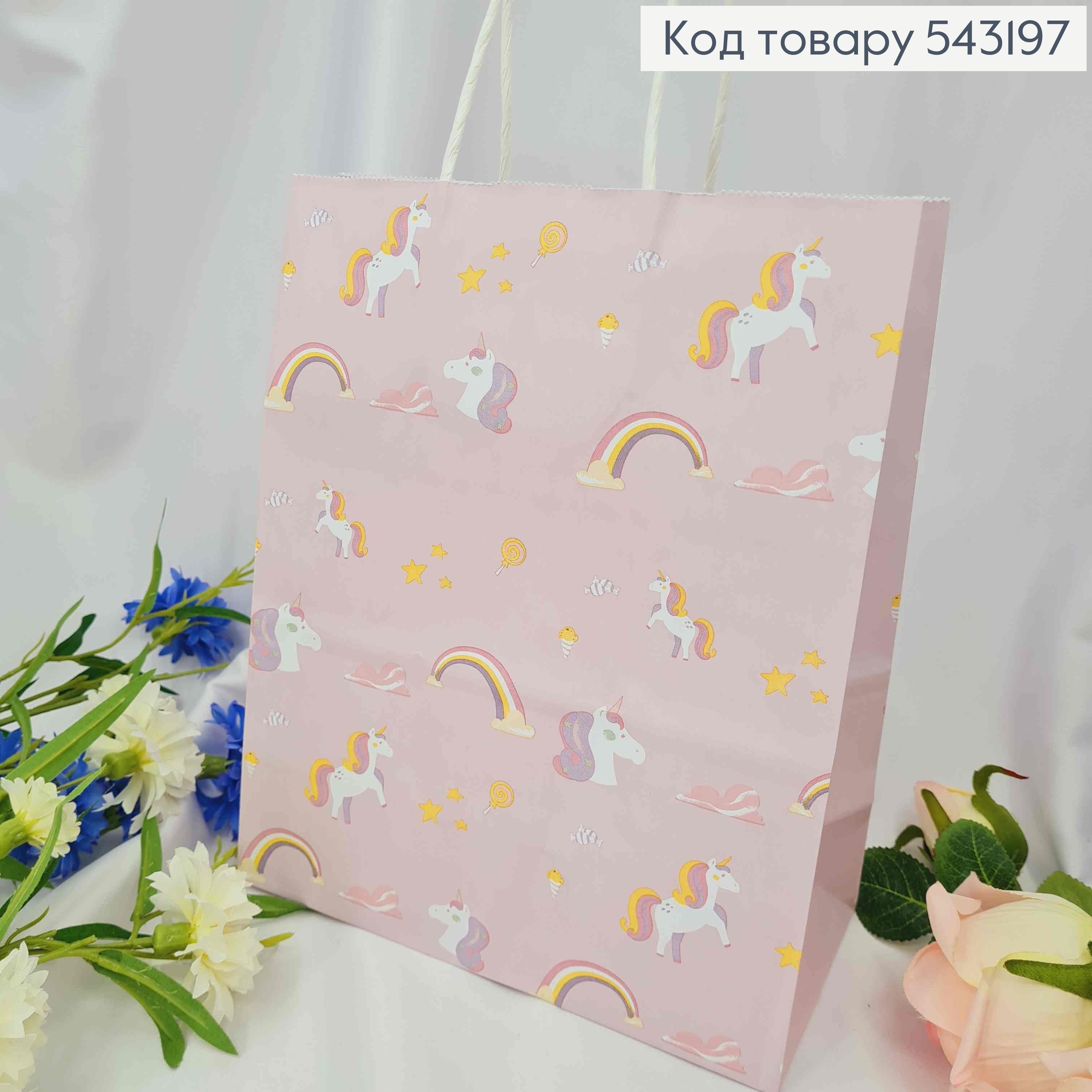 Пакет крафтовий, 22*27*11см, Блідо-Рожевий з Єдинорогом