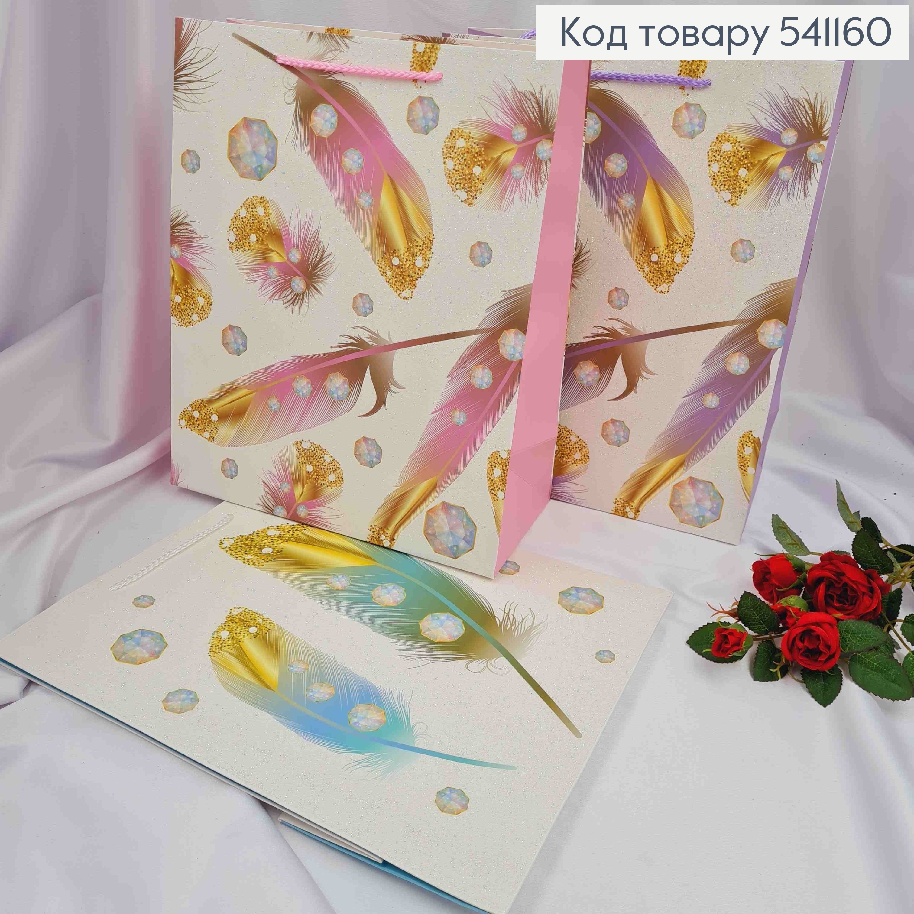 Пакет паперовий, "Діамантове Пір'я", 32*26*12см в асортименті
