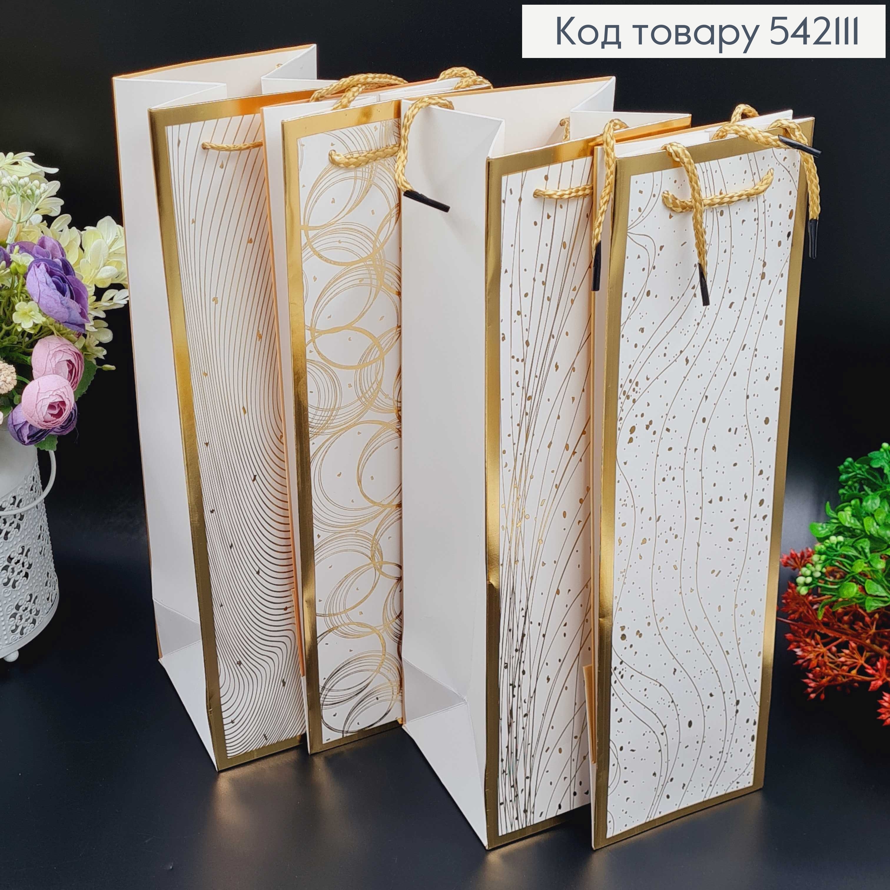 Пакет паперовий для паляшки "Золоте обрамлення", 11х38х11см, в асорт.