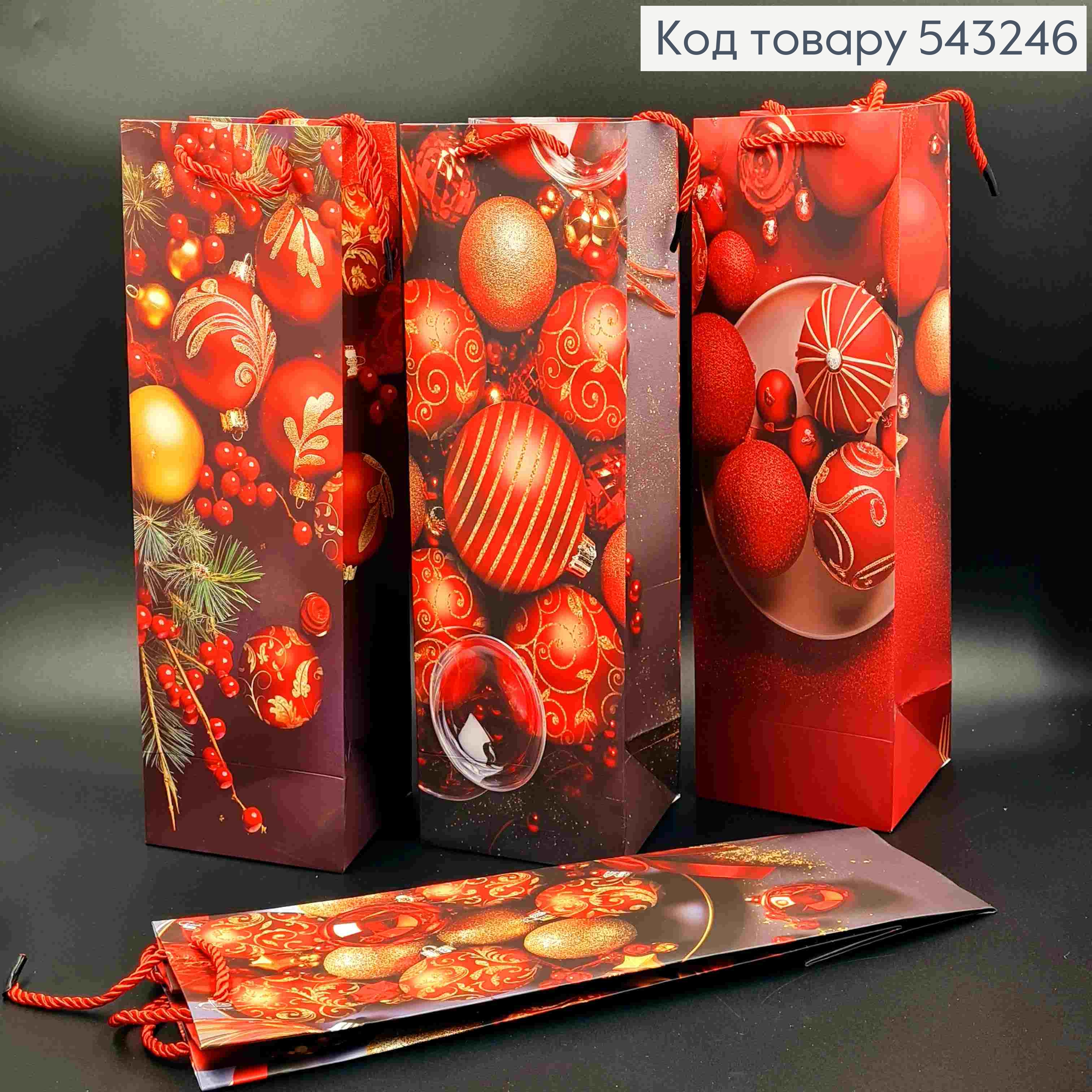 Пакет паперовий Червоний з Новорічним принтом, 32*26*10см, в асортименті 543253 фото