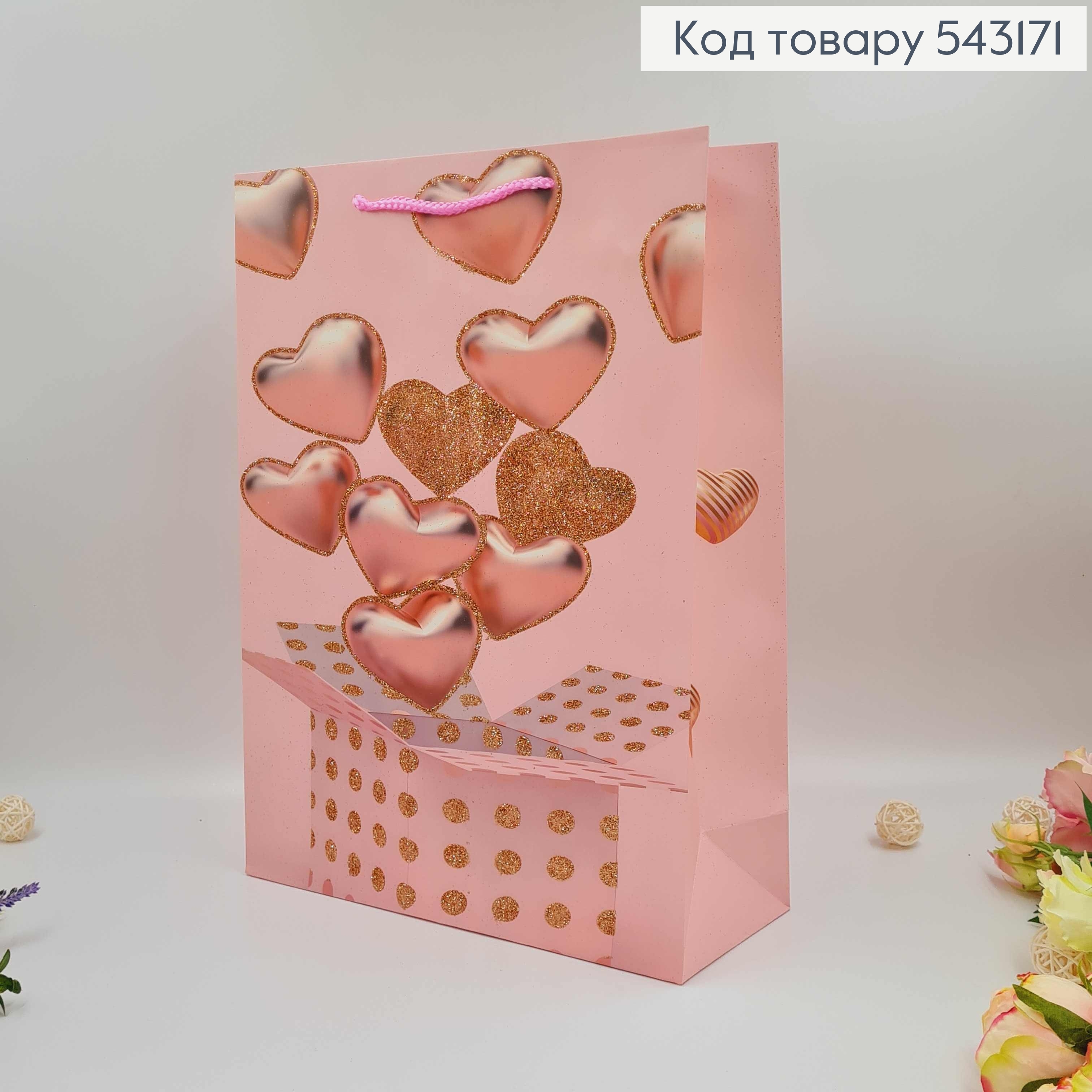 Пакет паперовий, Сердечка з блиском, в рожевому тоні, 40*30*12см