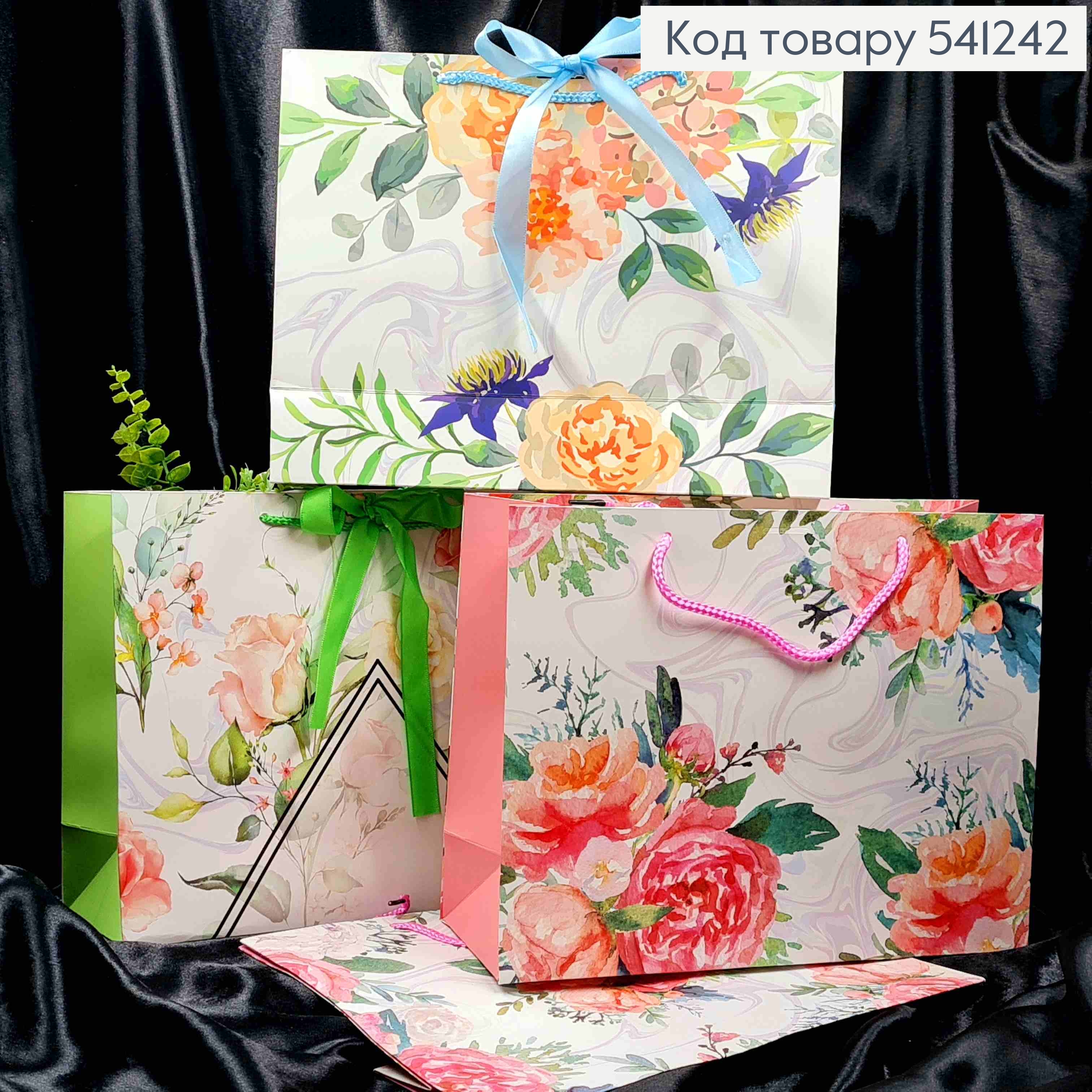 Пакет паперовий з Бантиком та принтом "Квіточки", 25*32*11см, в асортименті