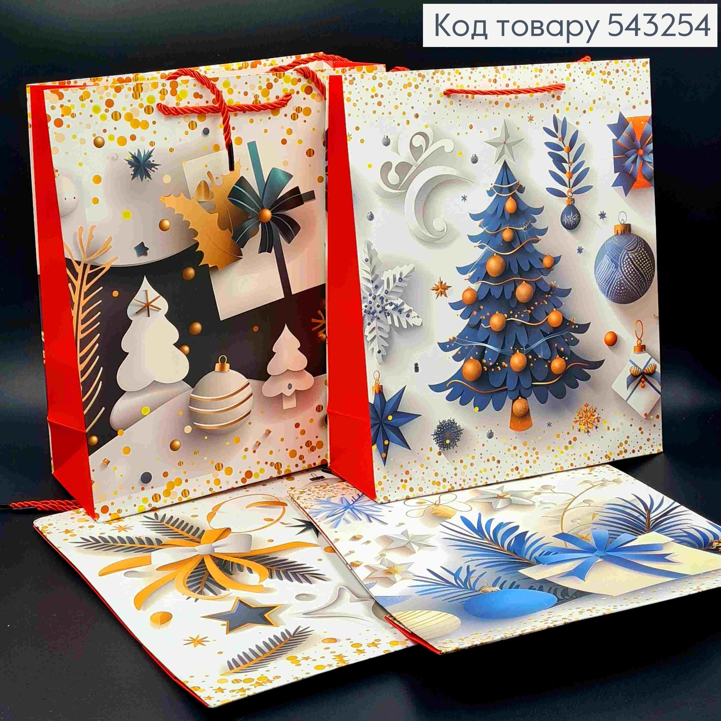 Пакет паперовий з Новорічним принтом та Блиском, 32*26*10см, в асортименті 543258 фото