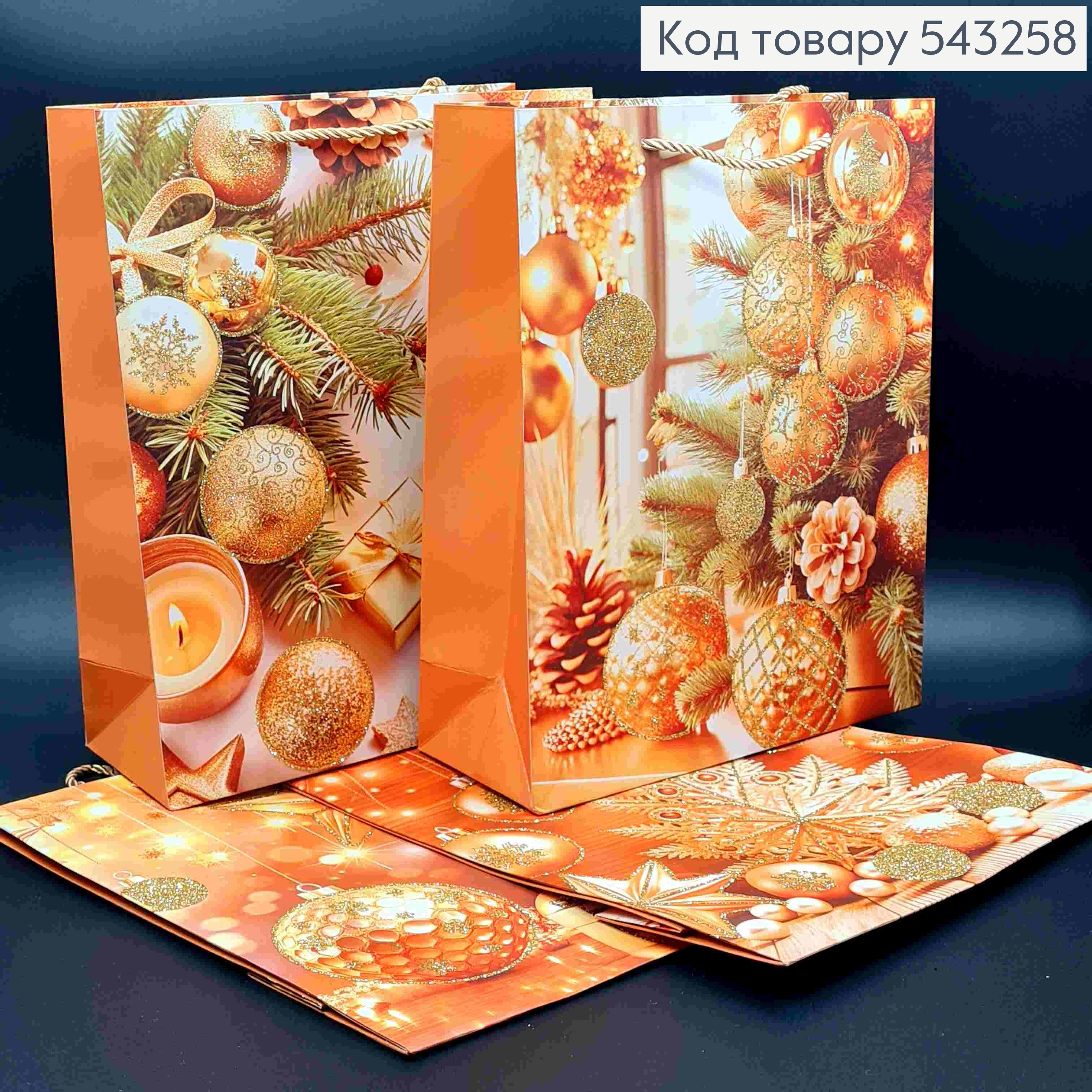 Пакет паперовий з Новорічним принтом та Блиском, 32*26*10см, в асортименті