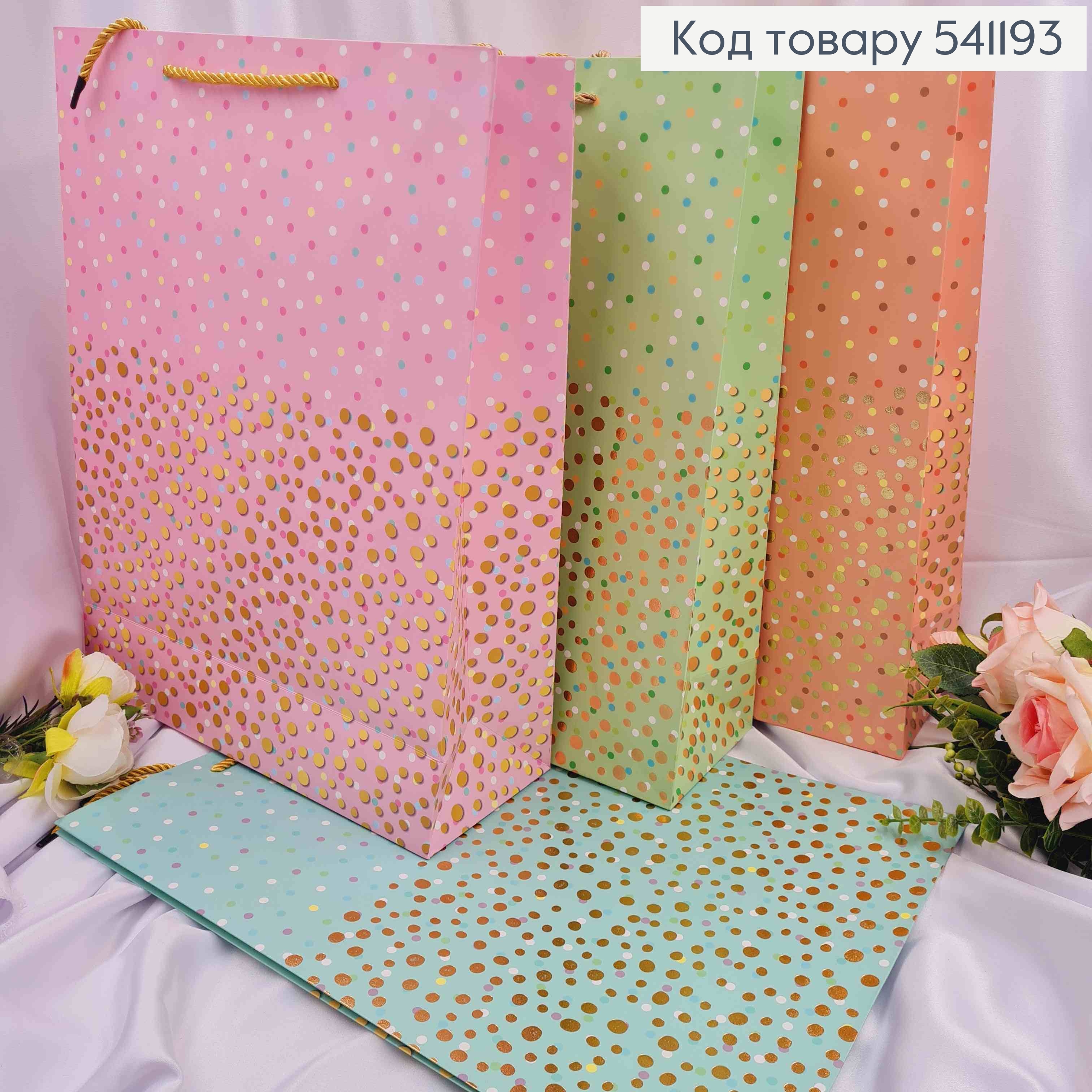 Пакет паперовий з плямками різного розміру, 42*31*12см, в асортименті