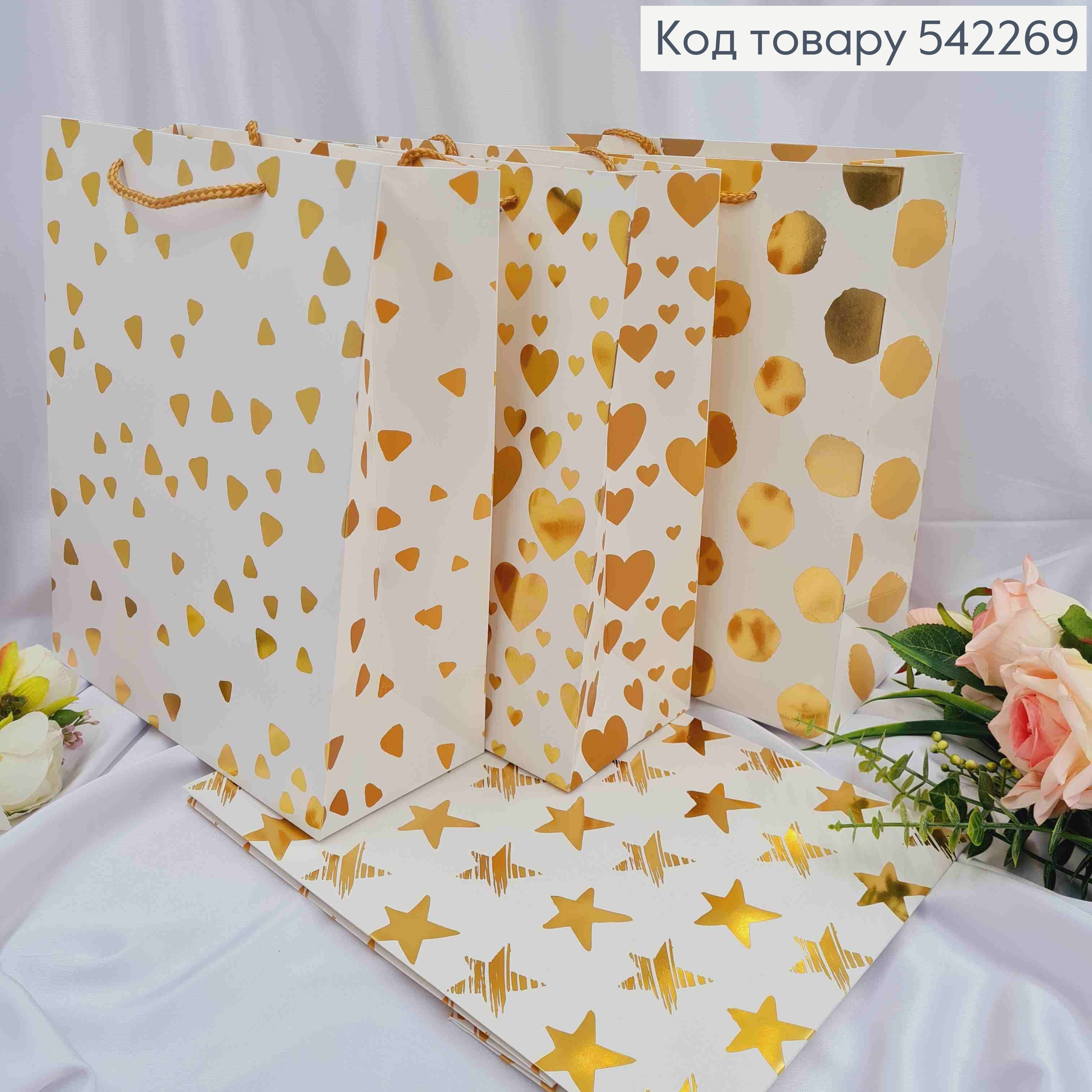 Пакет паперовий, з Золотим принтом, 32*26*10см в асортименті