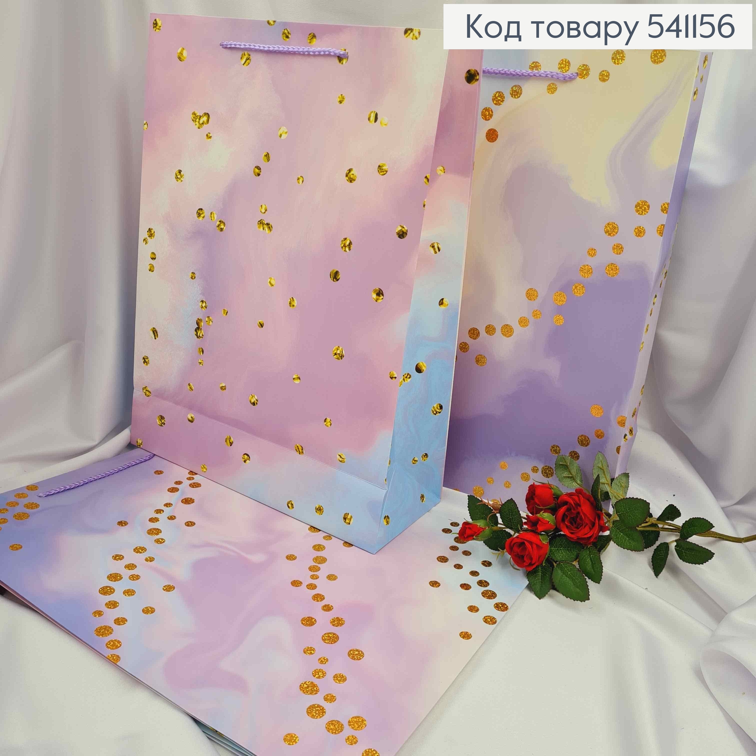 Пакет паперовий, "Захід Сонця" з Золотими колами, 41*31*12см в асортименті