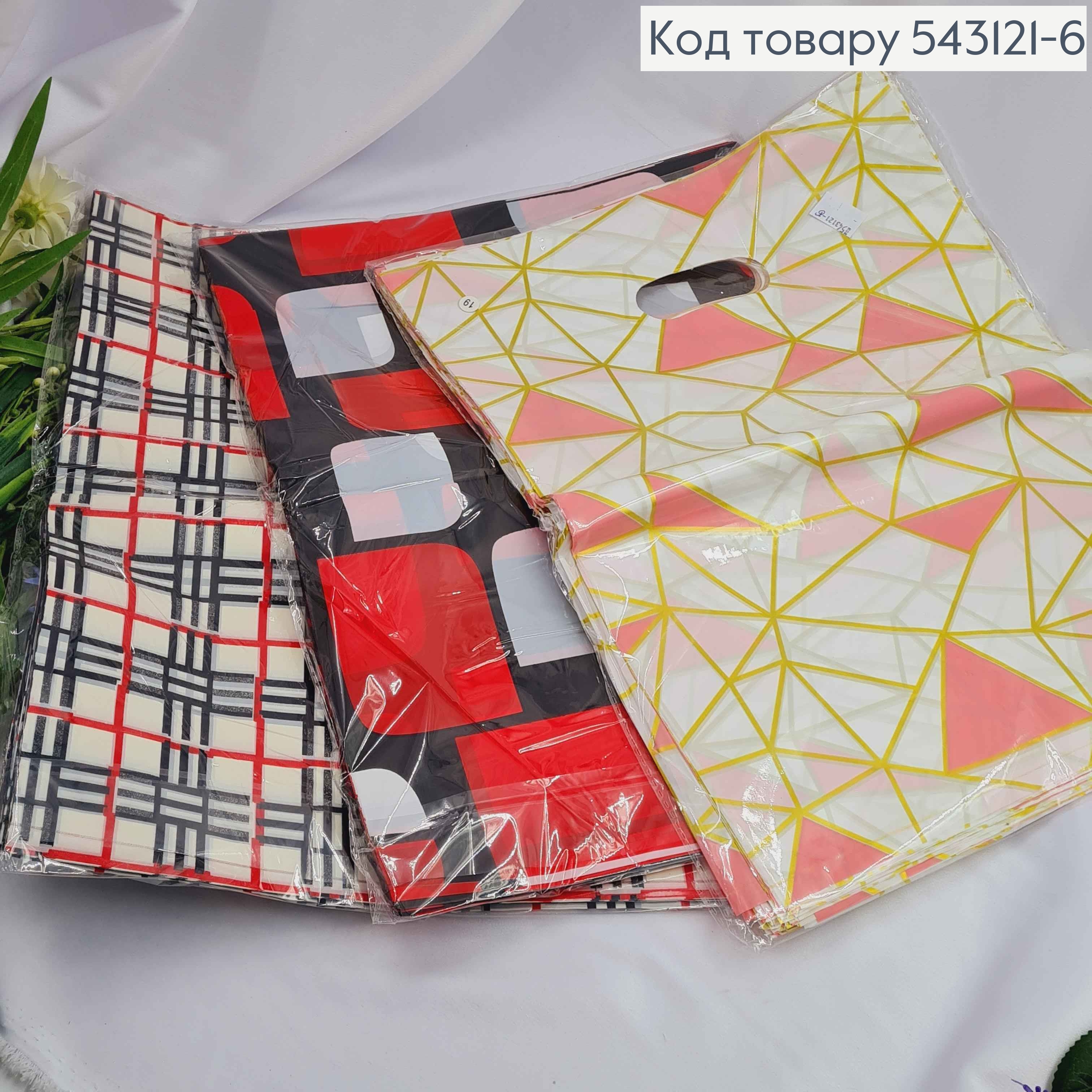 Пакет поліетиленовий "ГЕОМЕТРІЯ" (червоно-чорні та рожево білі кольори, в асорт, 39х30 см, 100 шт/уп