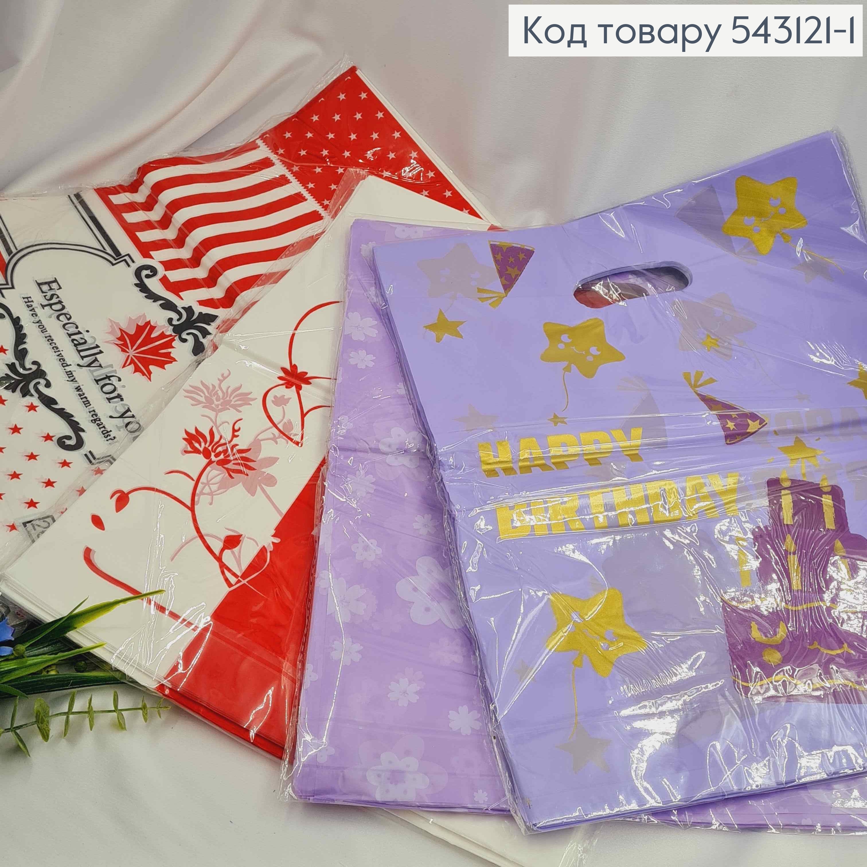 Пакет поліетиленовий "ЛАВАНДОВИЙ", "ЧЕРВОНІ квіти", "CANADA" в асорт., розмір 39х30 см, 100 шт/уп
