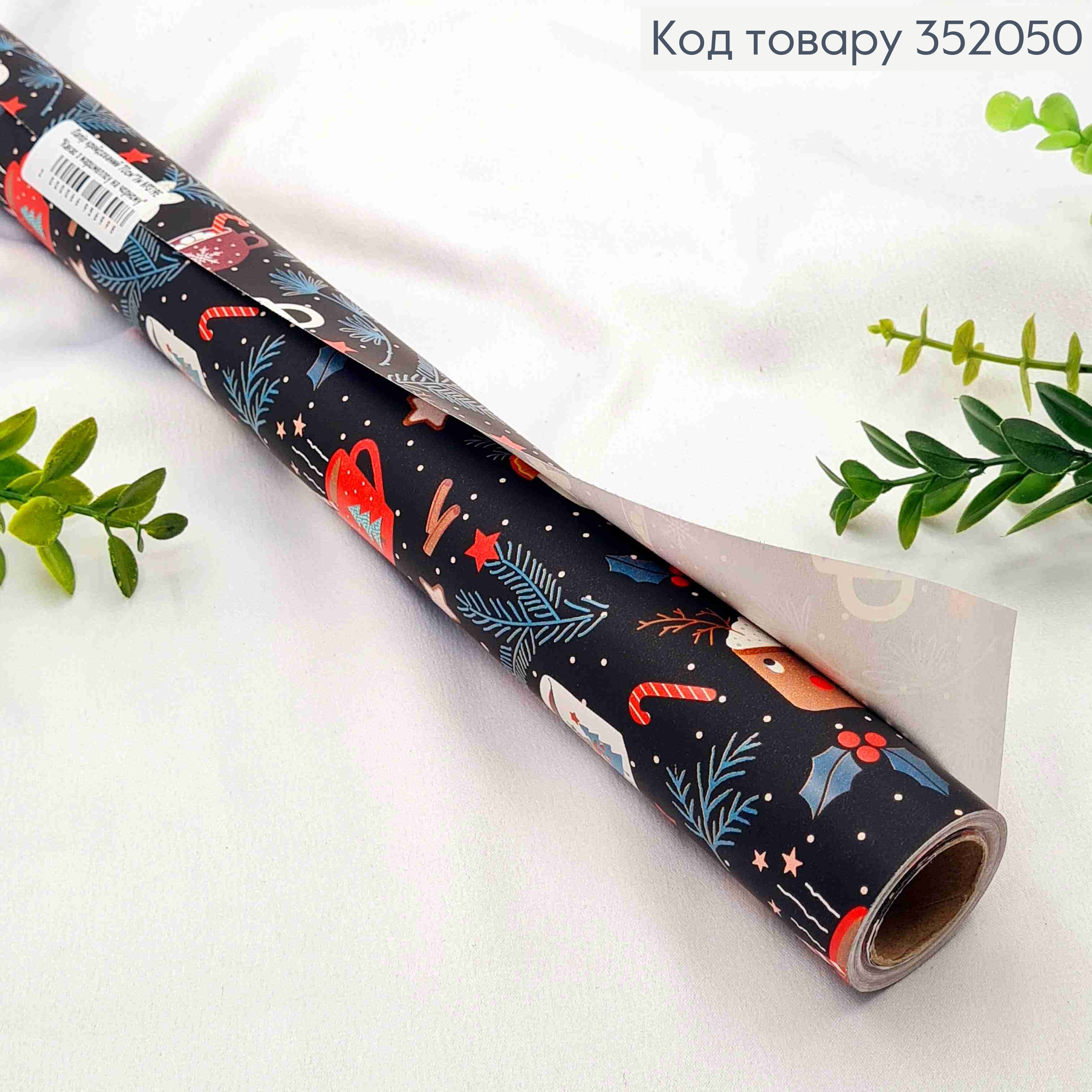 Папір крафтовий новорічний "Новорічні атрибути в кружечку", рулон 70см, довжина 7метрів, №3014 352055 фото
