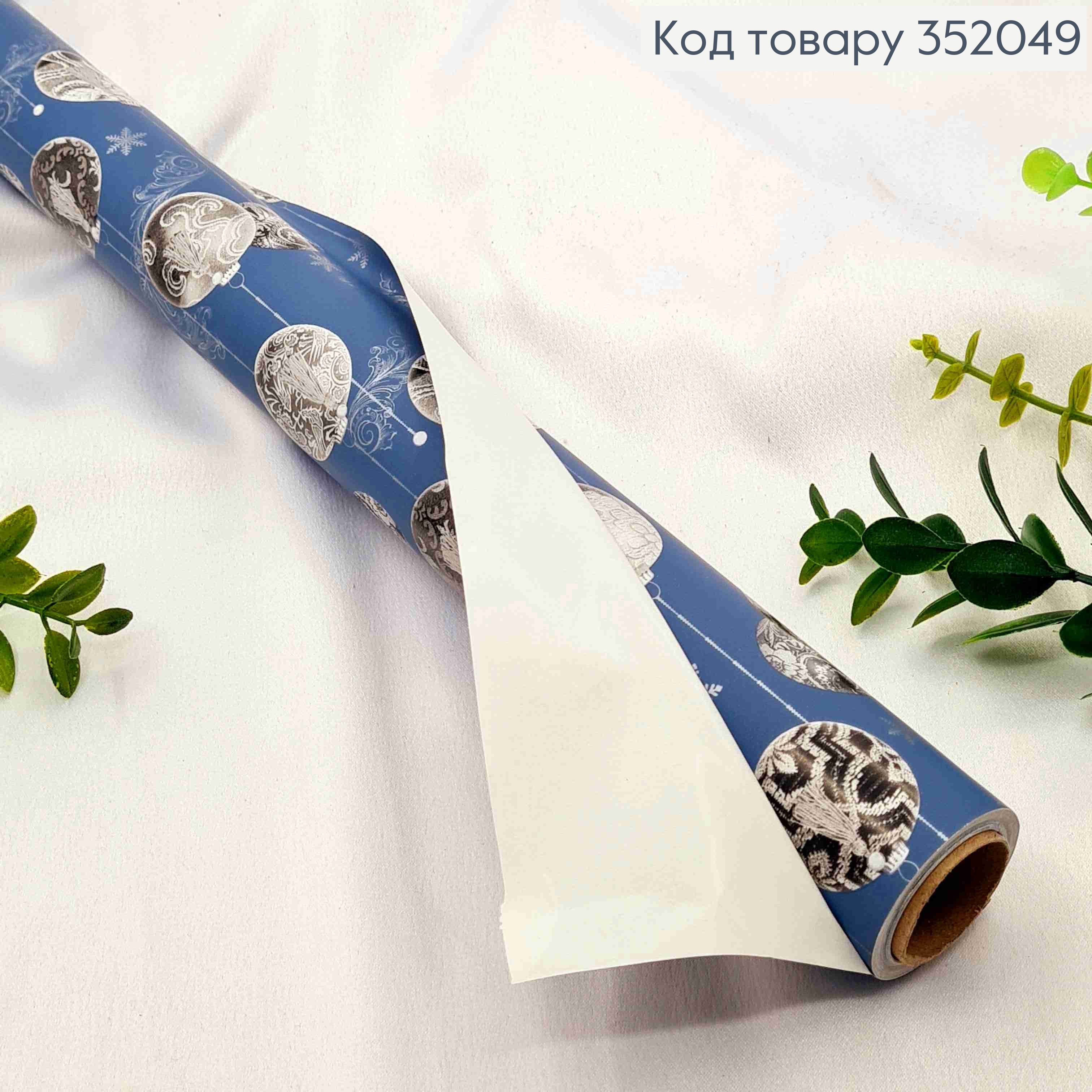 Папір крейдований новорічний "Срібні Ялинкові Іграшки", рулон 70см, довжина 7метрів, №316Е