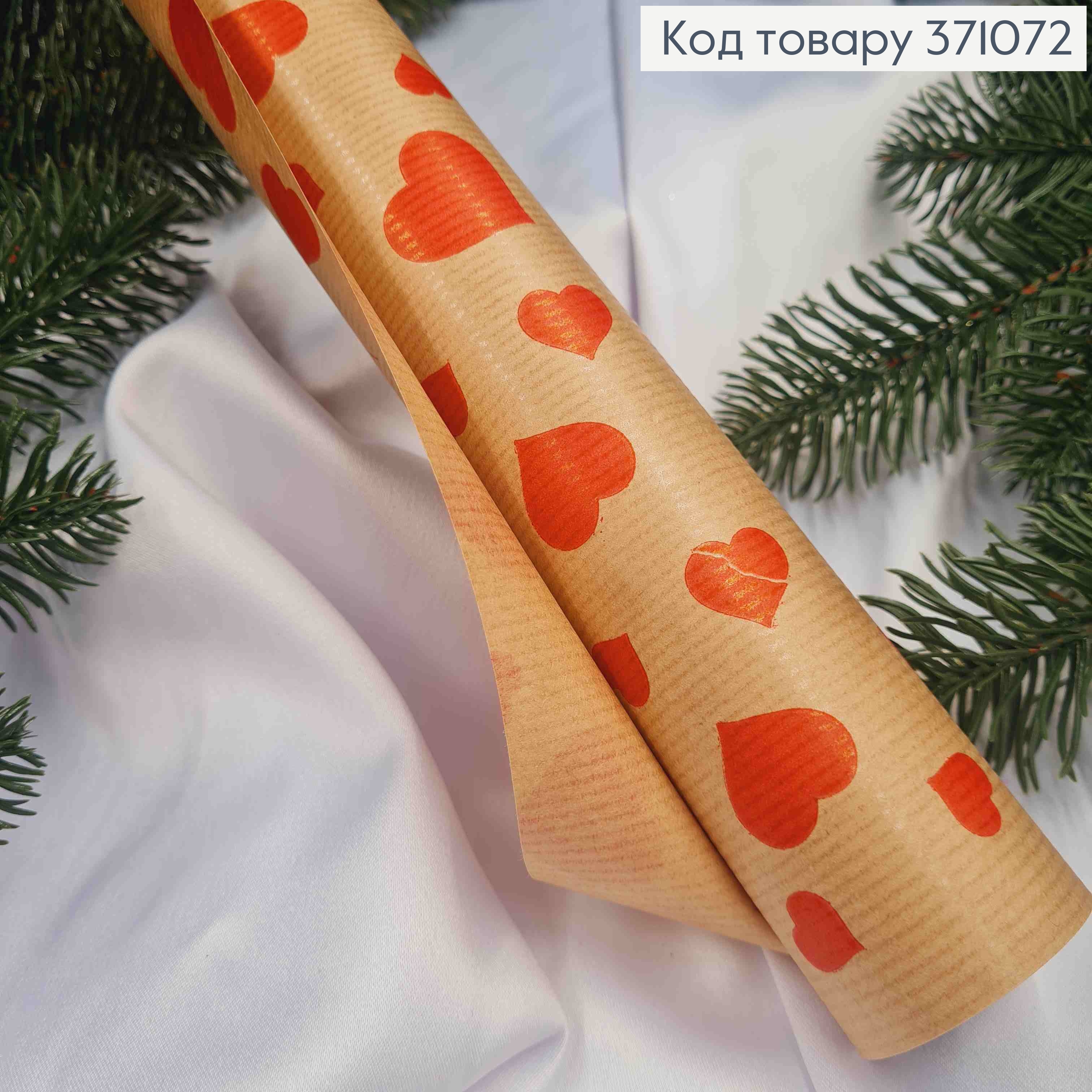 Папір в рулоні Крафт текстурна з Червоними Сердечками, 70см* 7метрів